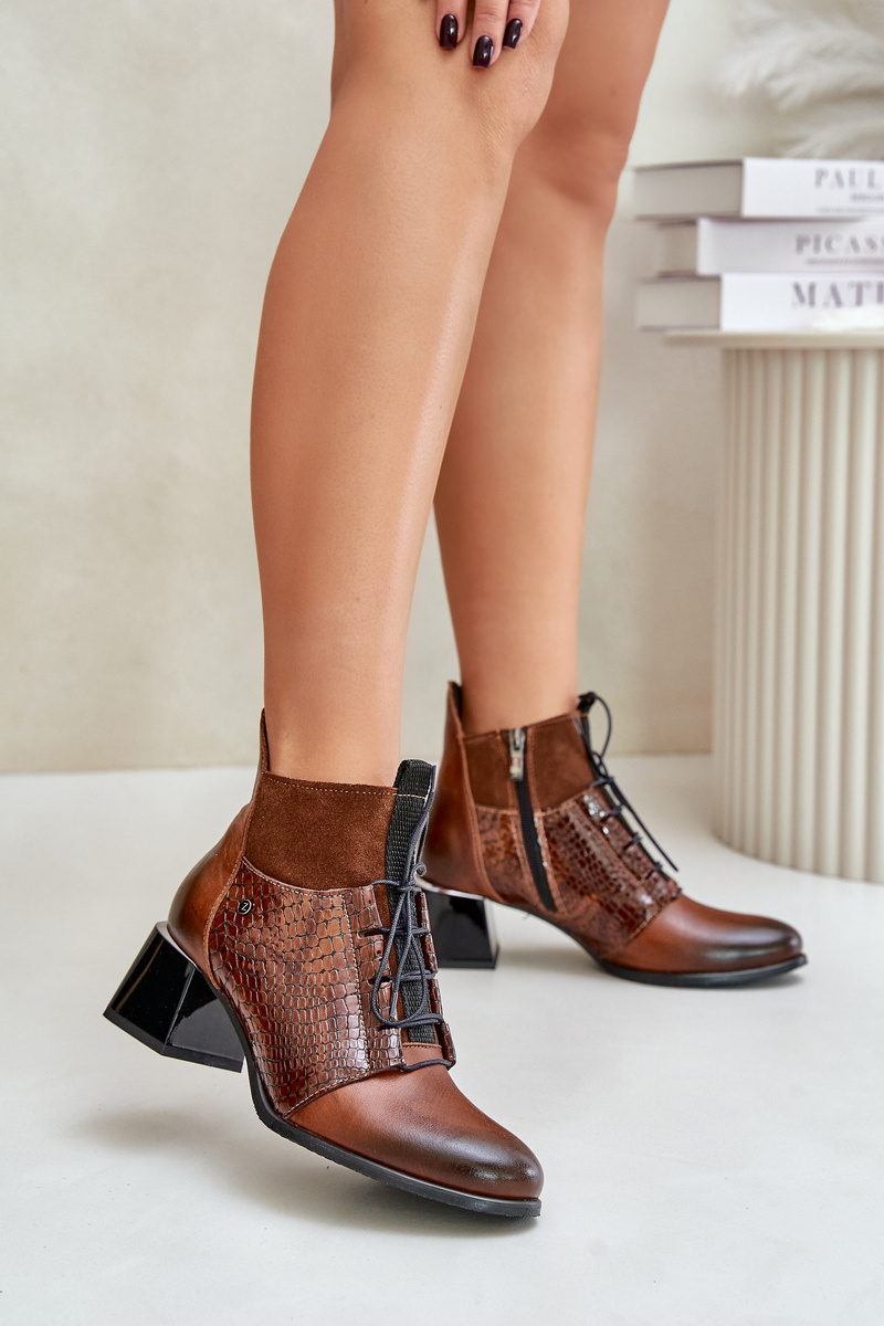 Botki Na Obcasie Skóra Naturalna Zwierzęcy Wzór Ocieplane Brązowe Zazoo 60503