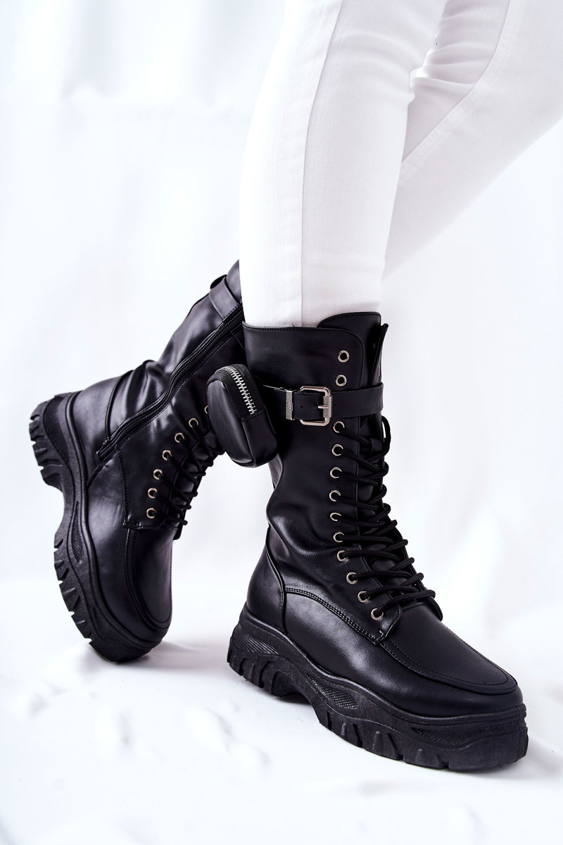 Wysokie botki z nerką na pasku świetnie będą pasować do wielu stylizacji! Posiadają suwak ułatwiający zakładanie oraz wiązanie. Pasek zapinany na sprzączkę, regulowany. Botki zostały wykonane z eko skóry. Wnętrze zostało ocieplone przyjemnym w dotyku i miękkim futerkiem. Przy wyborze rozmiaru prosimy kierować tabelą rozmiarów.