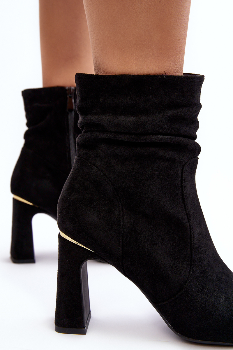 Botki Na Słupku Damskie Marszczona Cholewka Czarne Phaga BM12