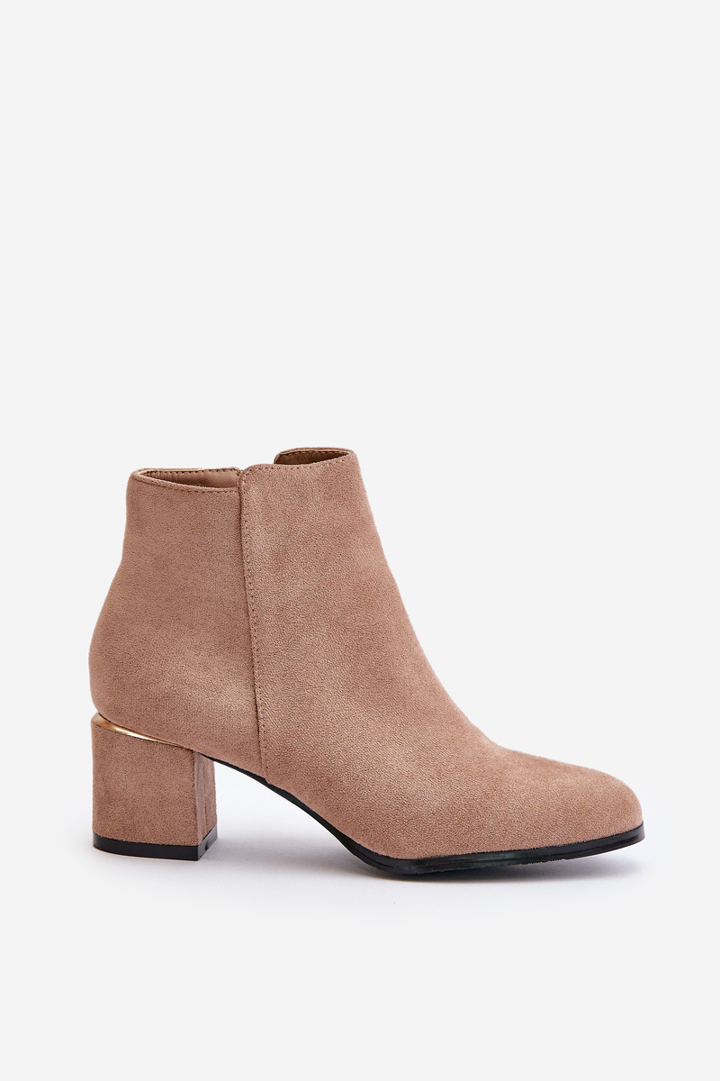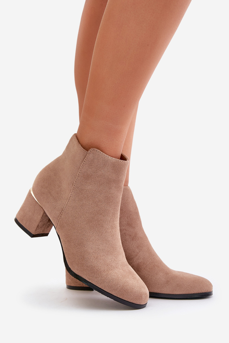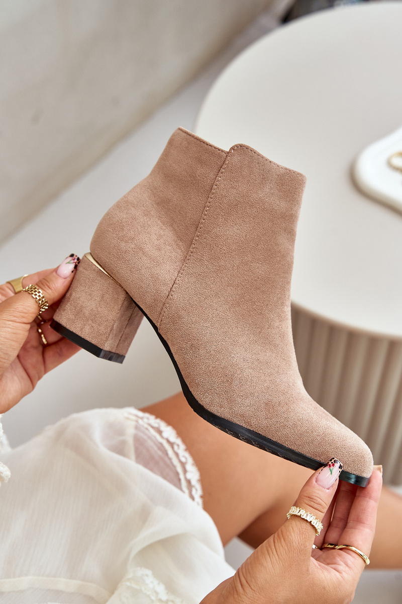 Botki Na Słupku Eko Zamszowe Zapinane Na Zamek Ciemnobeżowe Sairis