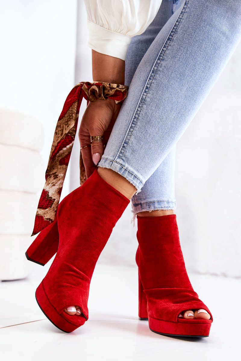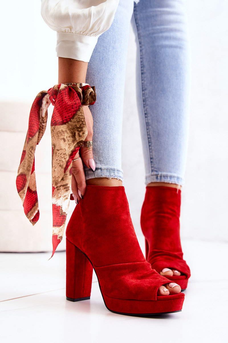 Botki Na Słupku Odkryte Palce Czerwone Adore