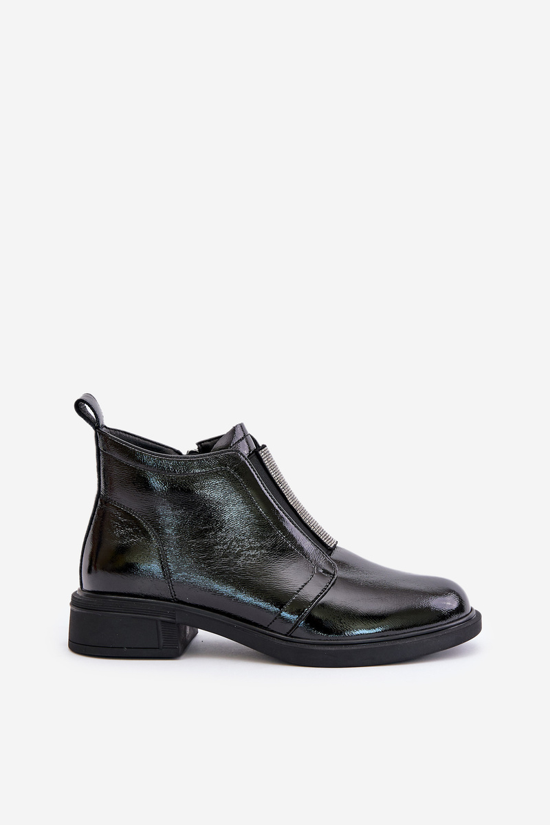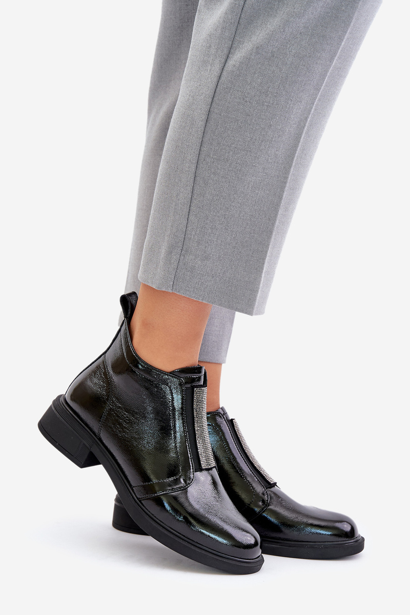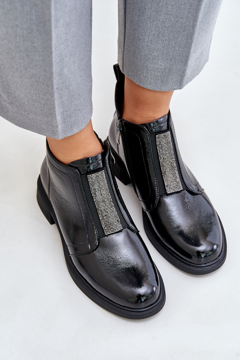 Botki Niskie Lakierowane Skóra Naturalna Zdobienie Zamek Czarne D&A MR880-142