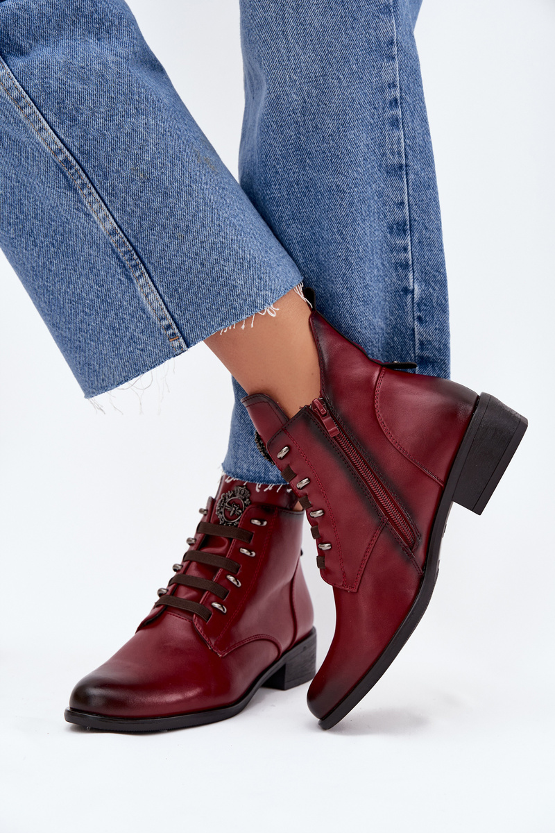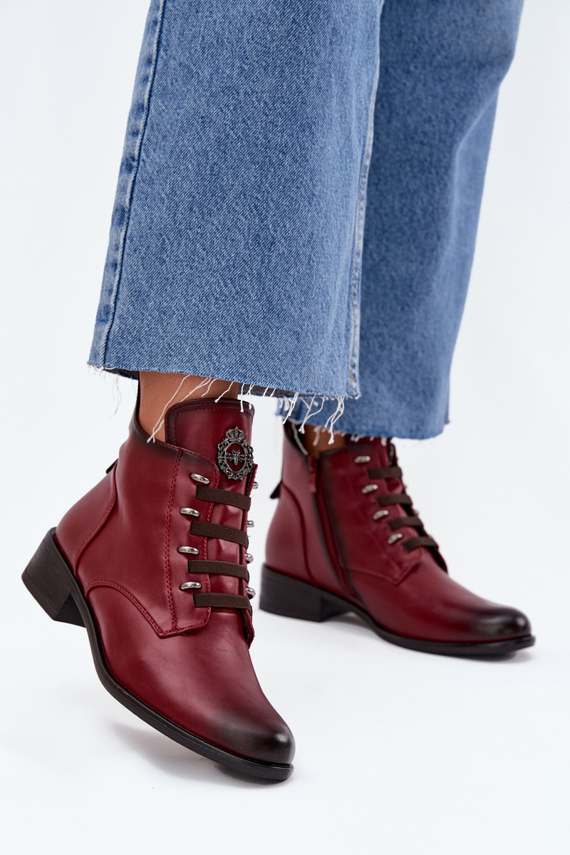 Botki Niskie Ocieplane Zamek Ozdoba Bordowe Nevalia