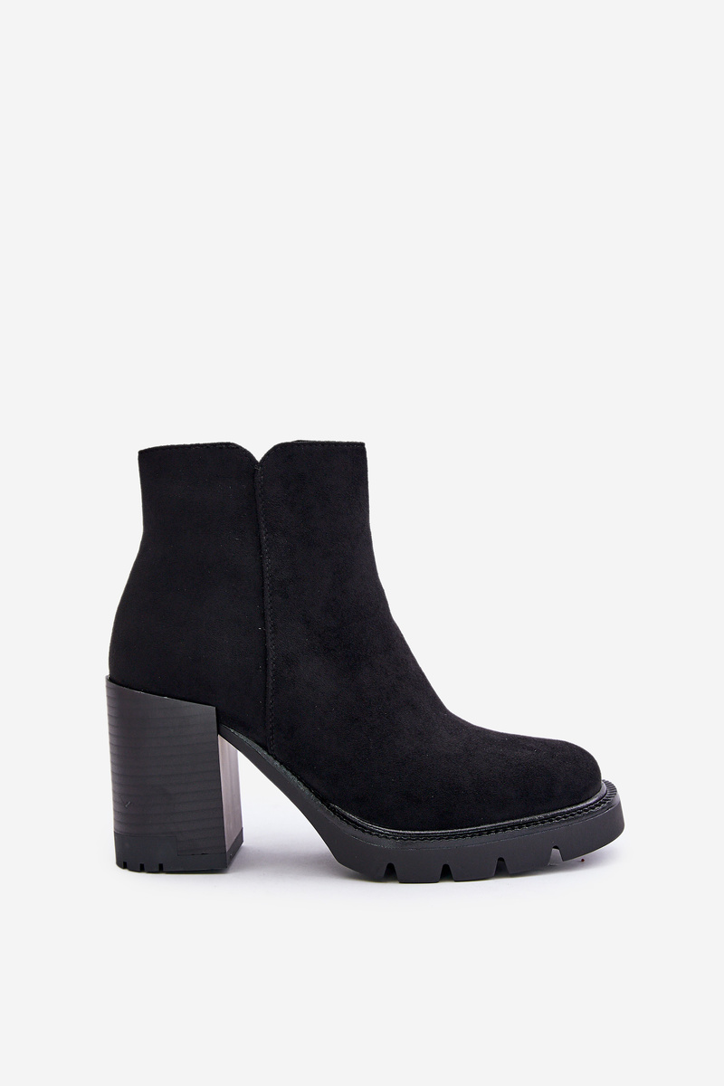 Botki Obcas Słupek Zamek Eko Zamszowe Czarne Cediona