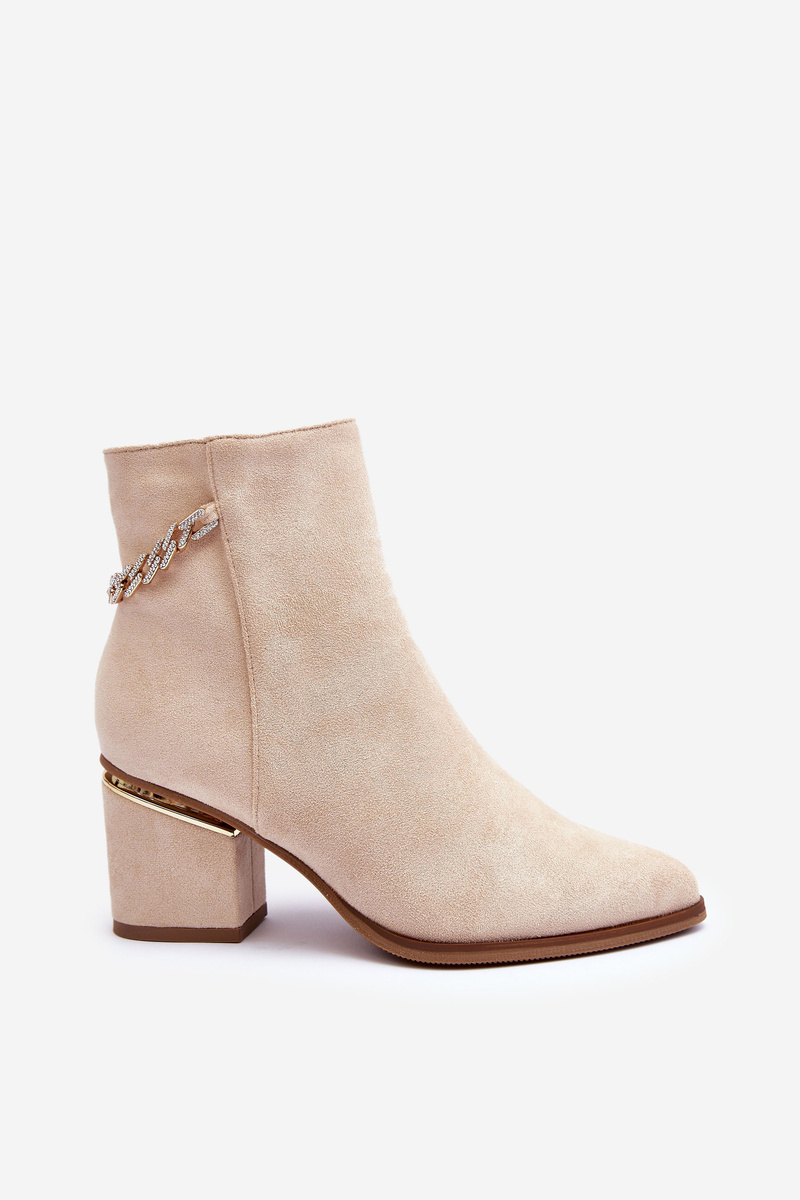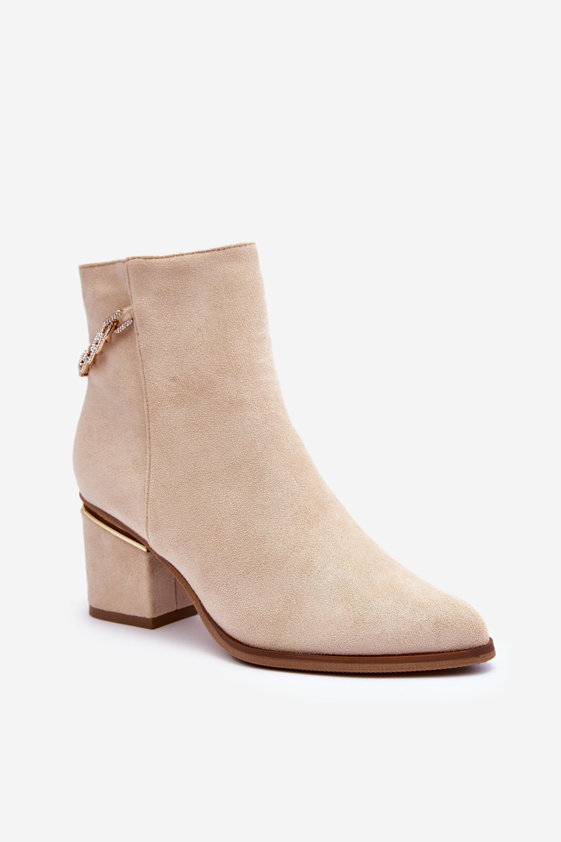 Botki Obcas Zamsz Biżuteryjna Ozdoba Beżowe Jadirel 0-521