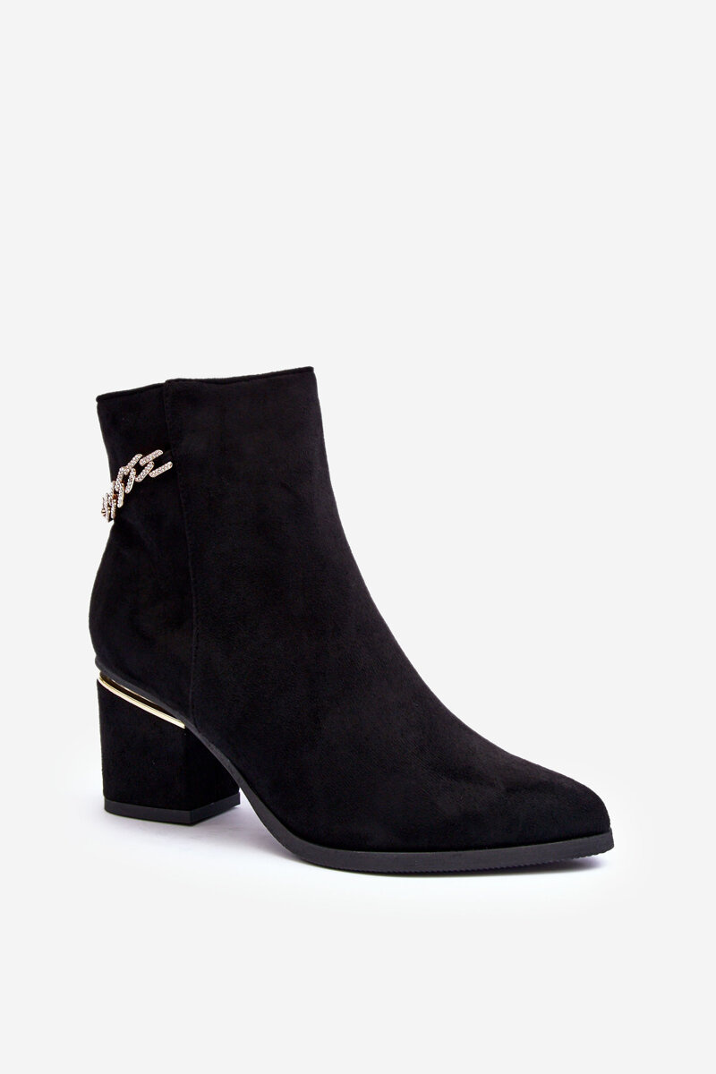 Botki Obcas Zamsz Biżuteryjna Ozdoba Czarne Jadirel 0-521