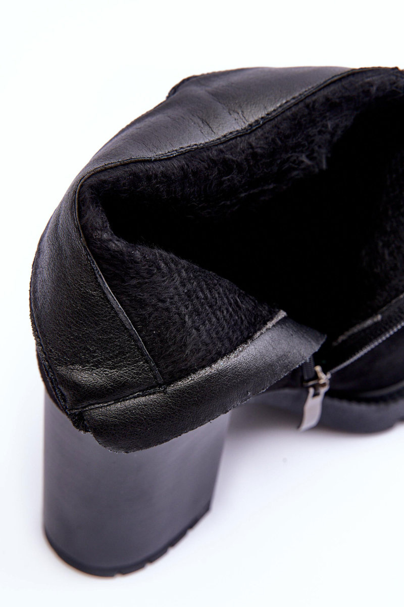 Botki Obcas Zamsz Czarne Makeline H8-526