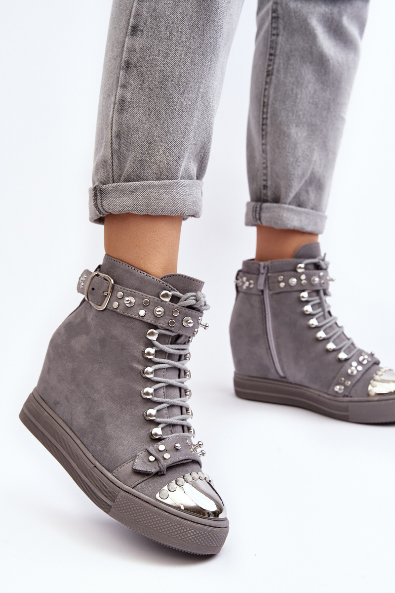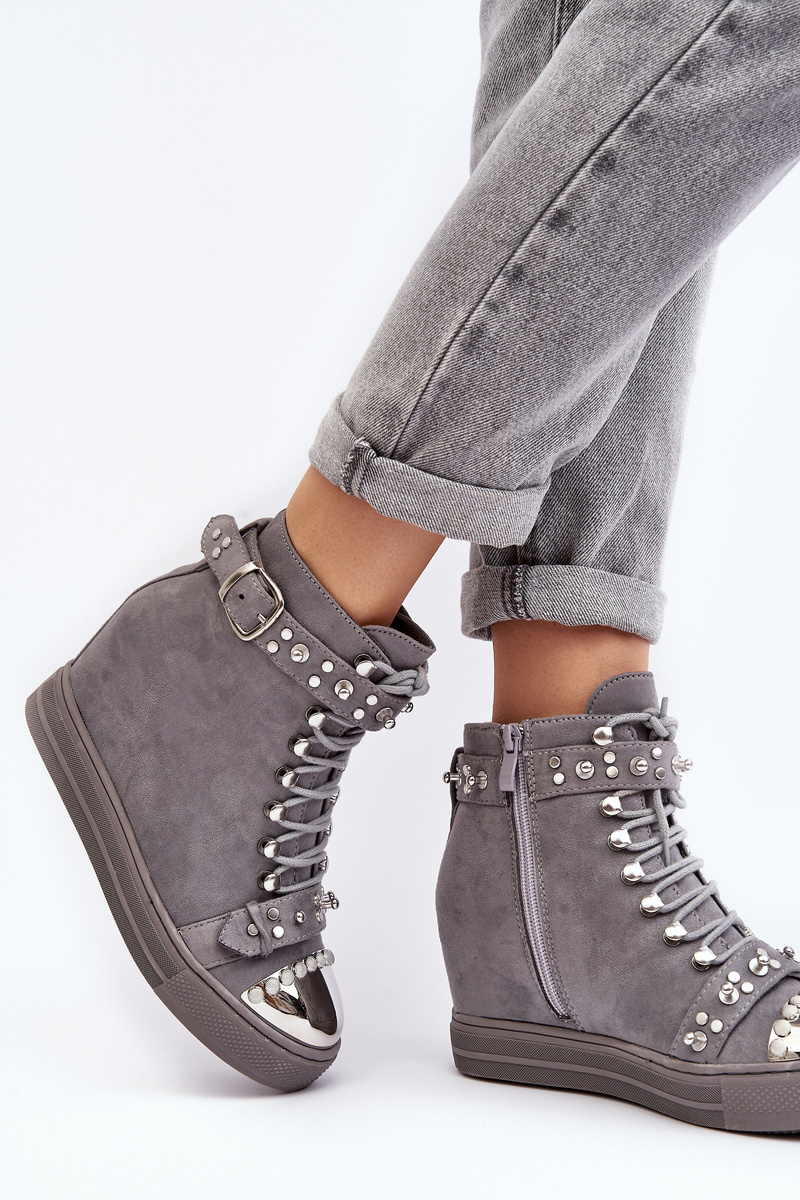 Botki Ocieplane Na Koturnie Z Dżetami Szare Lu Boo XW37348