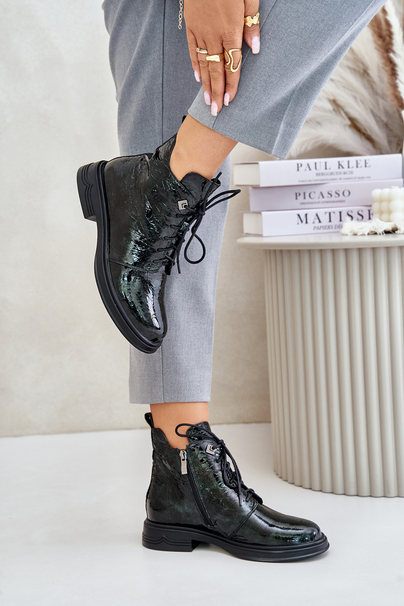 Botki Ocieplane Skóra Naturalna Lakierowane Na Zamek Ciemnozielone D&A LZ42-042