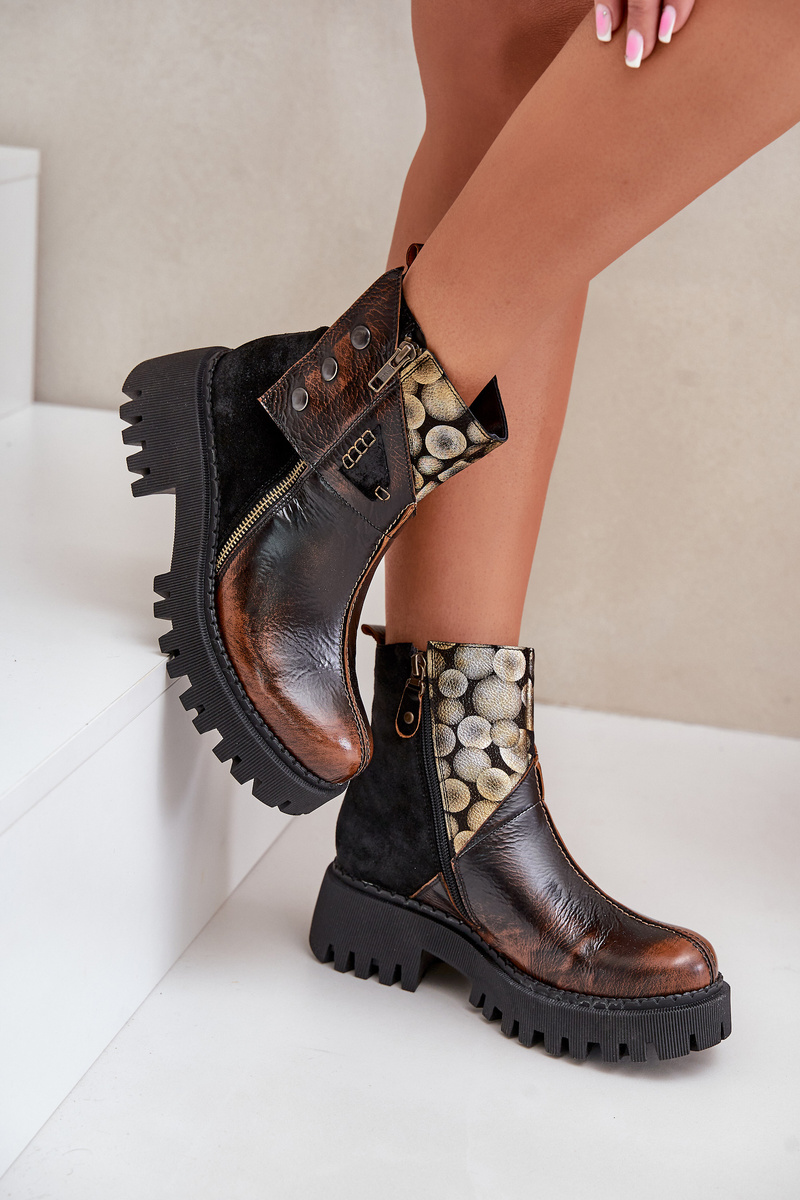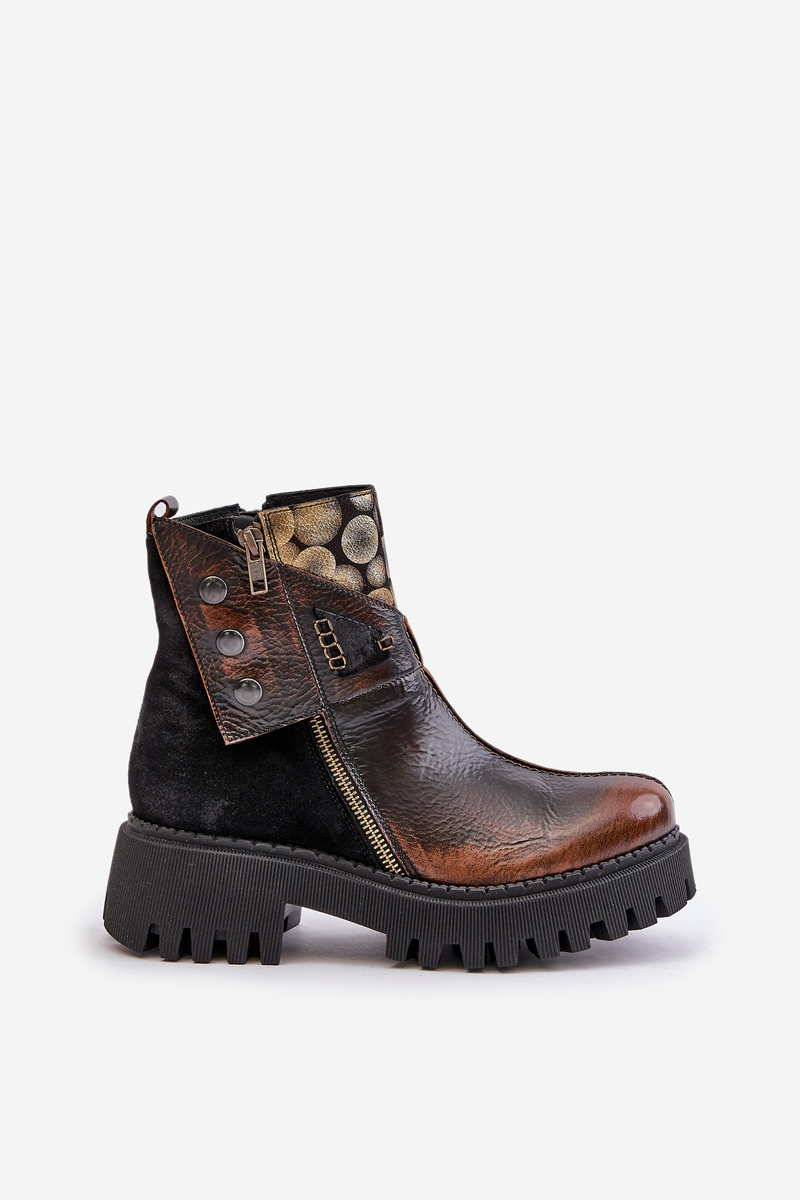 Botki Ocieplane Skóra Naturalna Płaski Obcas Platforma Złoto-Czarne Maciejka 06140-25