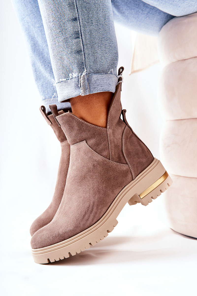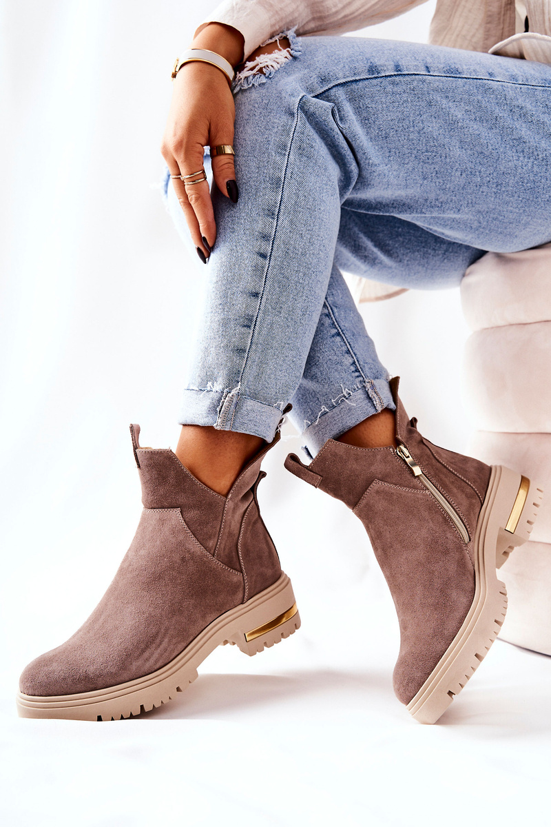 Botki Ocieplane Z Wycięciem Cappucino Tanya
