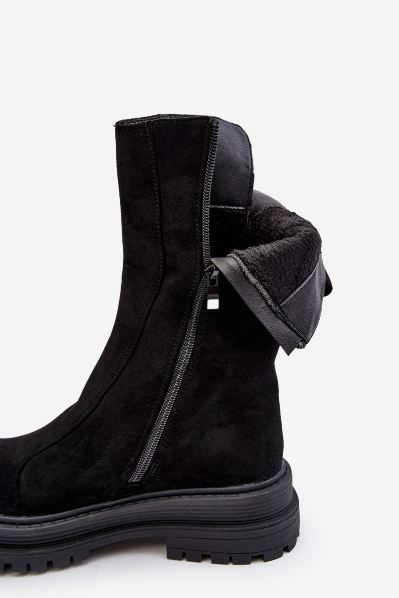 Botki Ocieplane Zamszowe Płaski Obcas Czarne Palimra NC1306