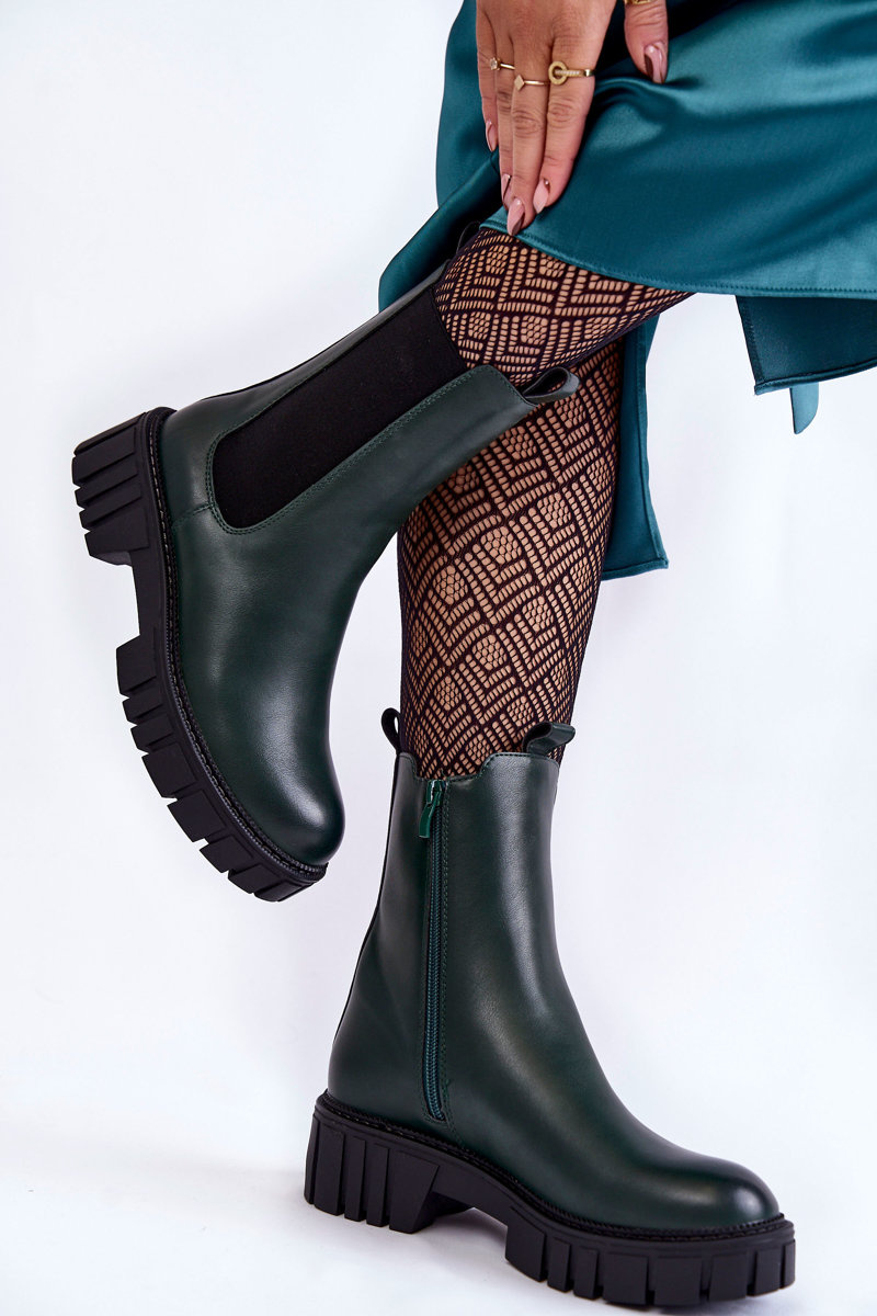 Botki Platforma Skóra Damskie Zielone Bente