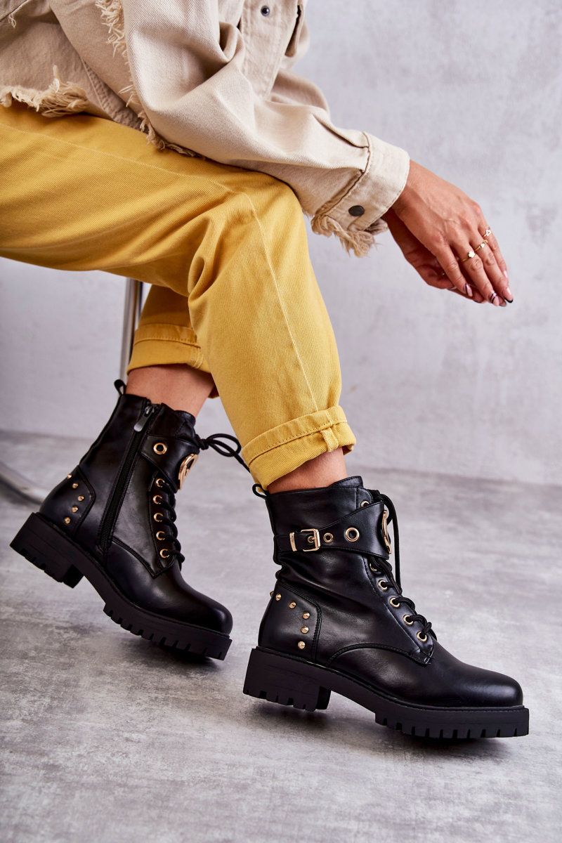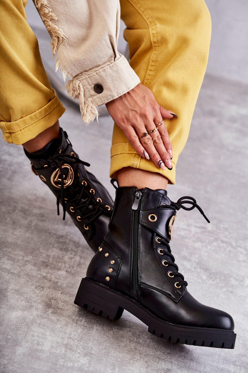Botki Skóra Damskie Ćwieki Czarne Leticia