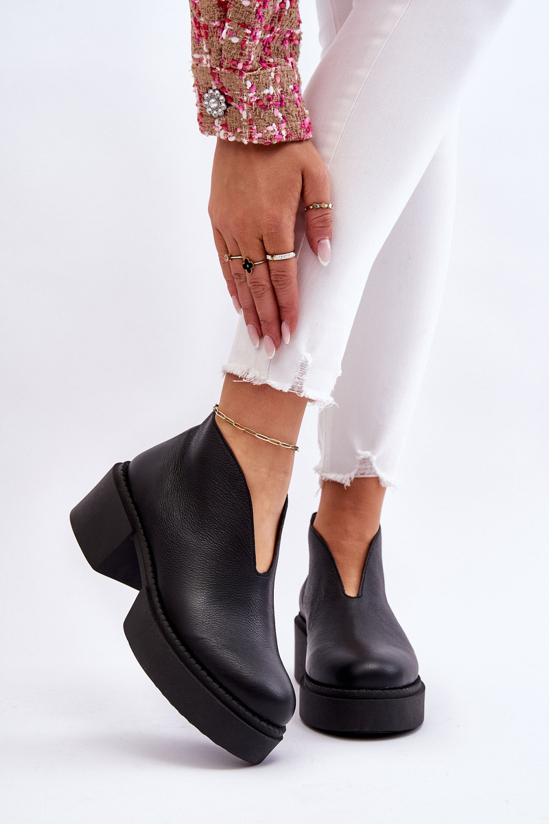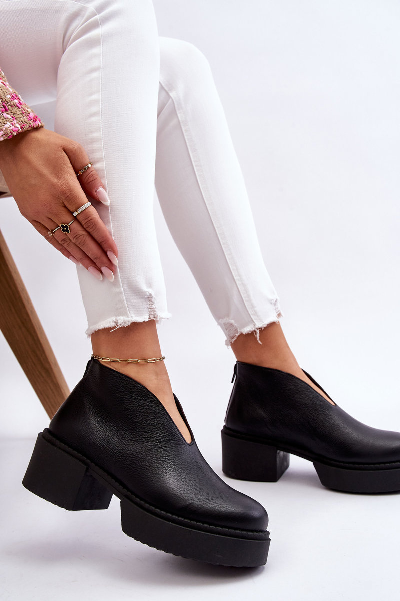 Wiosenne botki stanowią świetne dopełnienie zarówno eleganckich, jak i sportowych stylizacji. Możesz założyć je do dzianinowej sukienki, ale także do jeansów. Wyjątkowy model wzbogaci Twój wiosenny outfit! Wykonane z naturalnej skóry. Model o ciekawym wyglądzie przypadnie do gustu niejednej kobiecie! Botki są zapinane z tyłu cholewki na suwak. Dodatkowo posiadają usztywniany zapiętek. Zostały osadzone na masywnym obcasie i platformie.