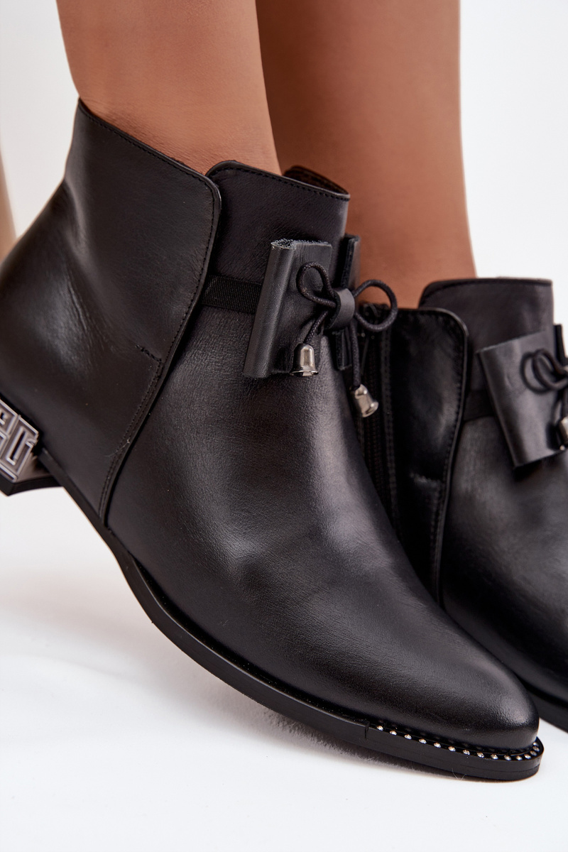 Botki Skóra Naturalna Niski Obcas Czarne Zazoo 1396