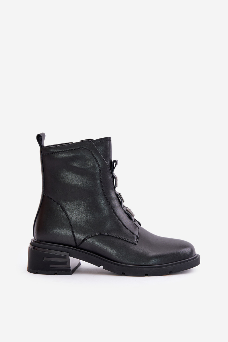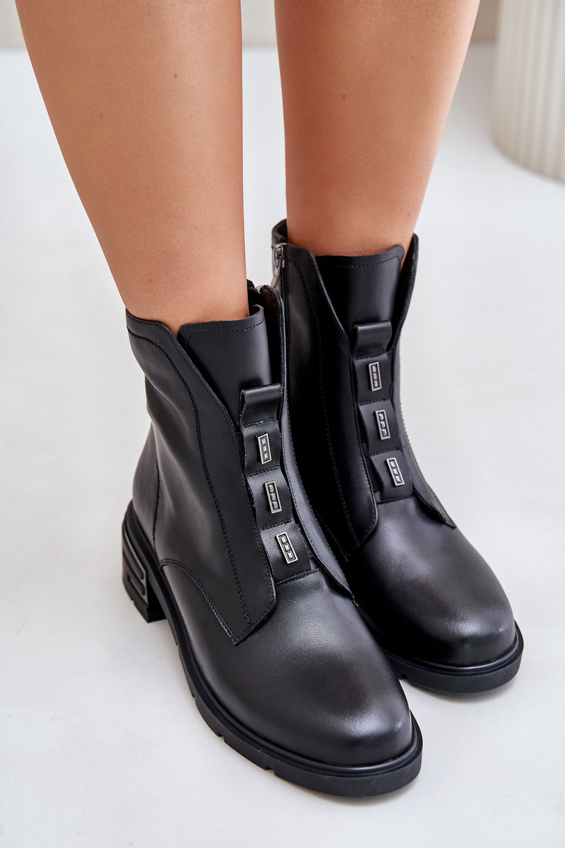 Botki Skóra Naturalna Płaski Obcas Zamek Czarne Olidrila
