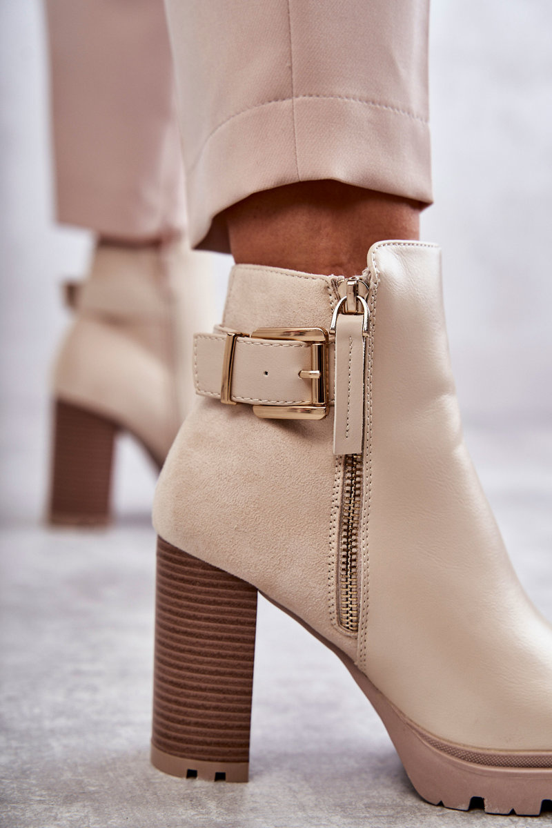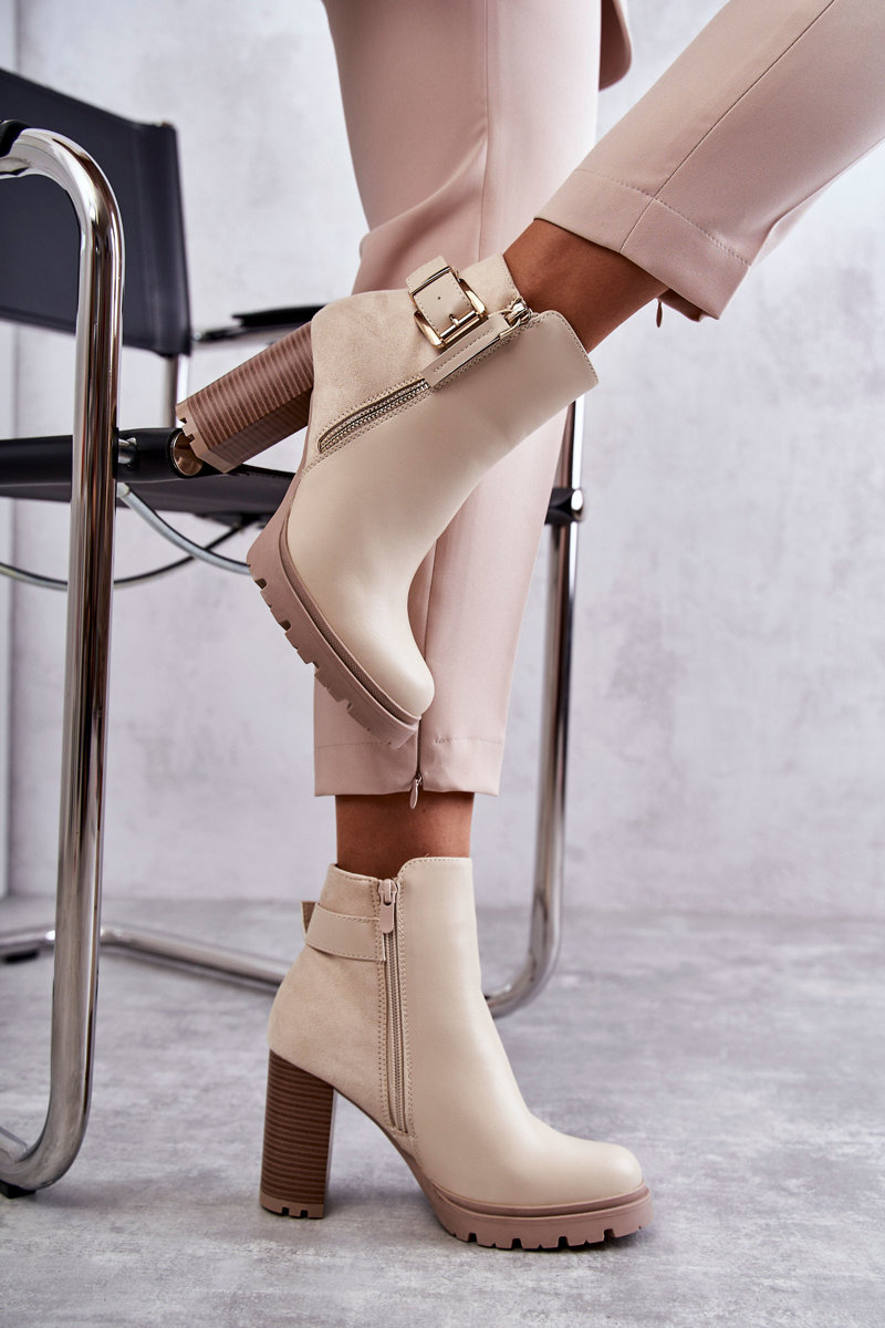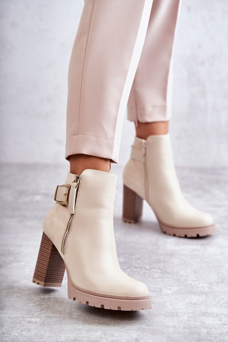 Botki Skóra Obcas Ozdobny Zamek Beżowe Rosita