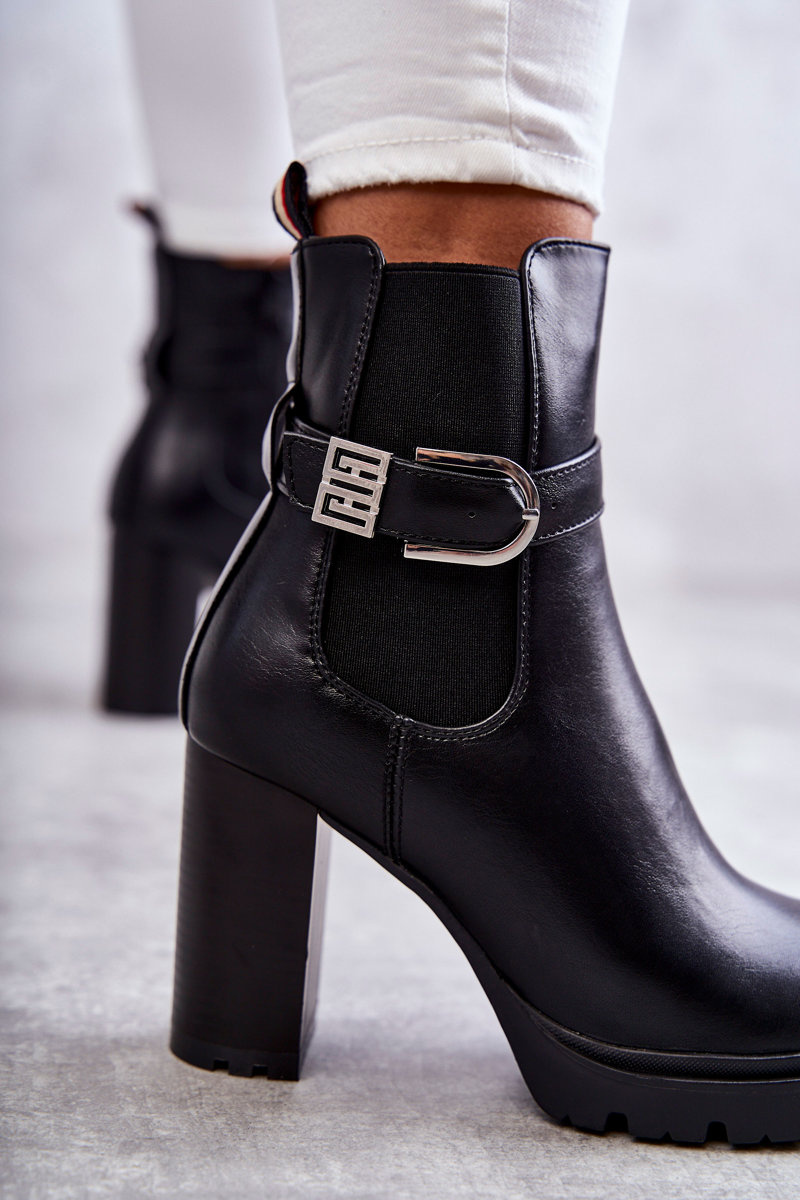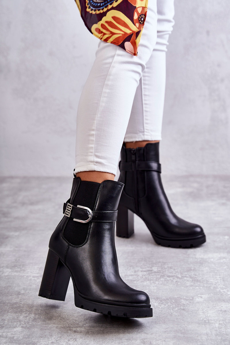 Botki Skóra Obcas Słupek Ozdobny Pasek Czarne Maresol