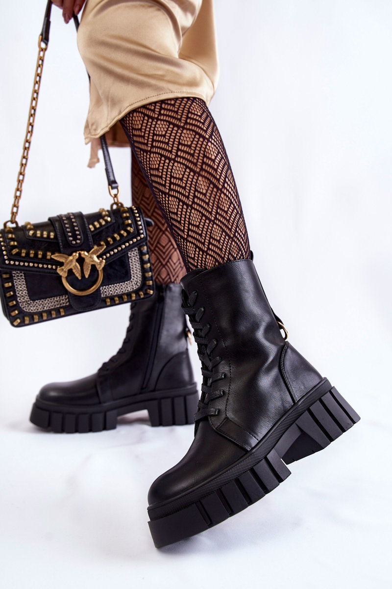 Uwielbianym i najczęściej wybieranym modelem przez kobiety są botki na płaskim, stabilnym obcasie. Posiadają wiele atutów, jednak głównym z nich jest zapewnienie wysokiego komfortu podczas noszenia. Wykonane z wysokiej jakości eko skóry. Botki posiadają sznurowanie oraz suwak z boku cholewki. Model został osadzony na masywnym obcasie i platformie ze żłobieniami. Botki są ocieplane miłym w dotyku kocem obuwniczym.