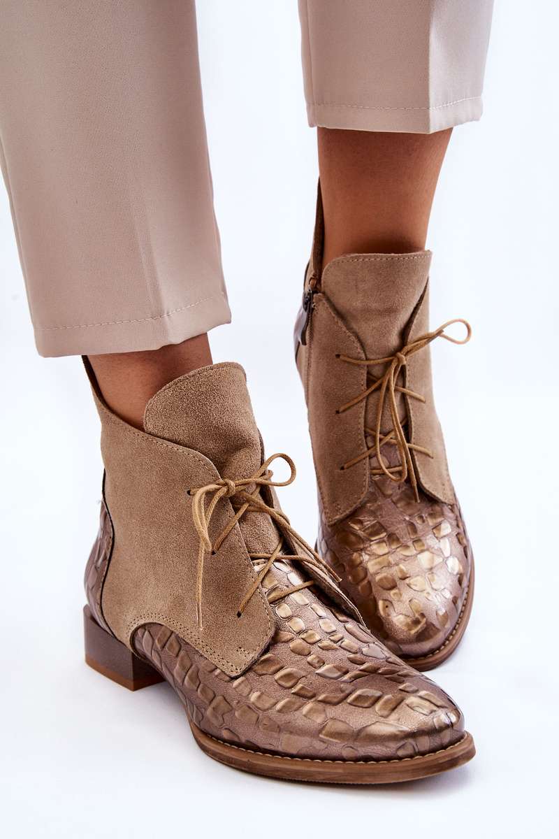 Botki Skóra Płaski Obcas Beżowe Maciejka 2878J-04