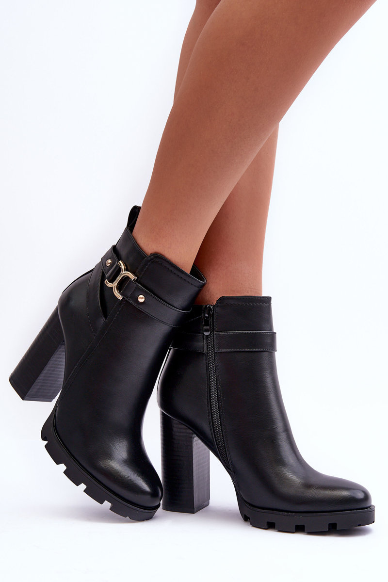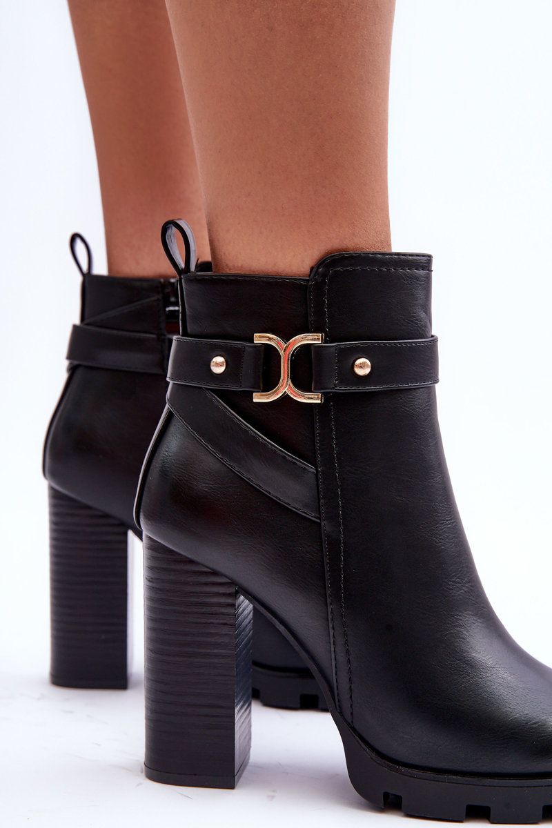 Botki Skóra Wysoki Słupek Czarne Liani F38