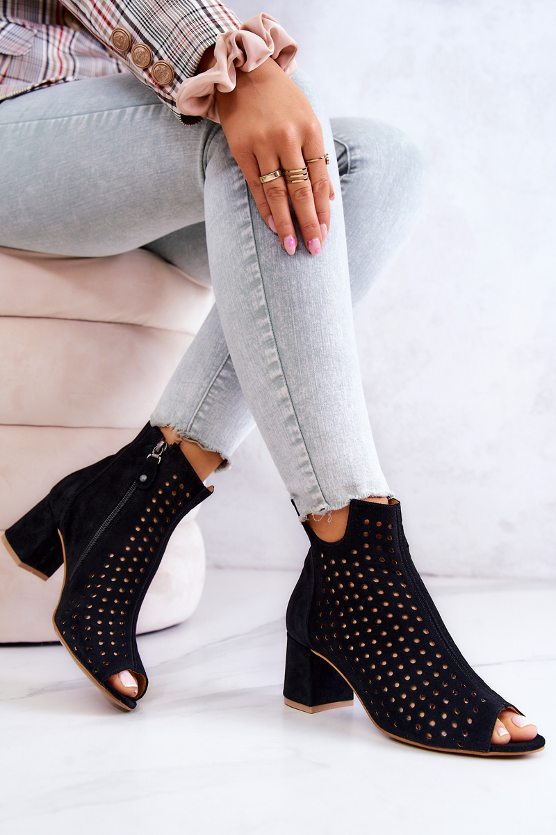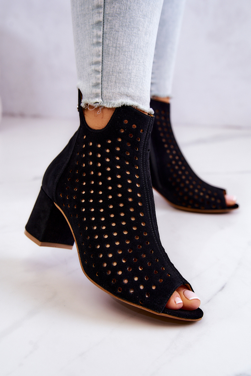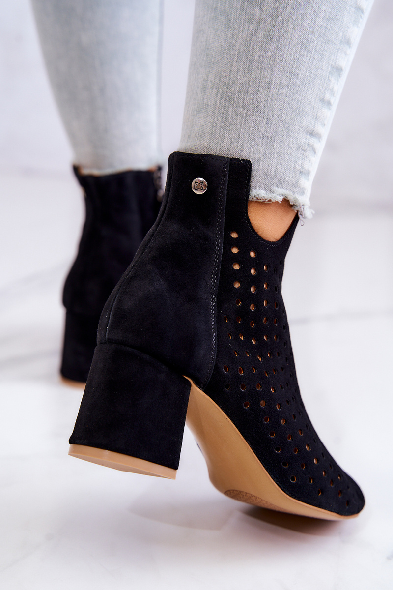 Botki Skórzane Ażurowe Maciejka Czarne 05420-43