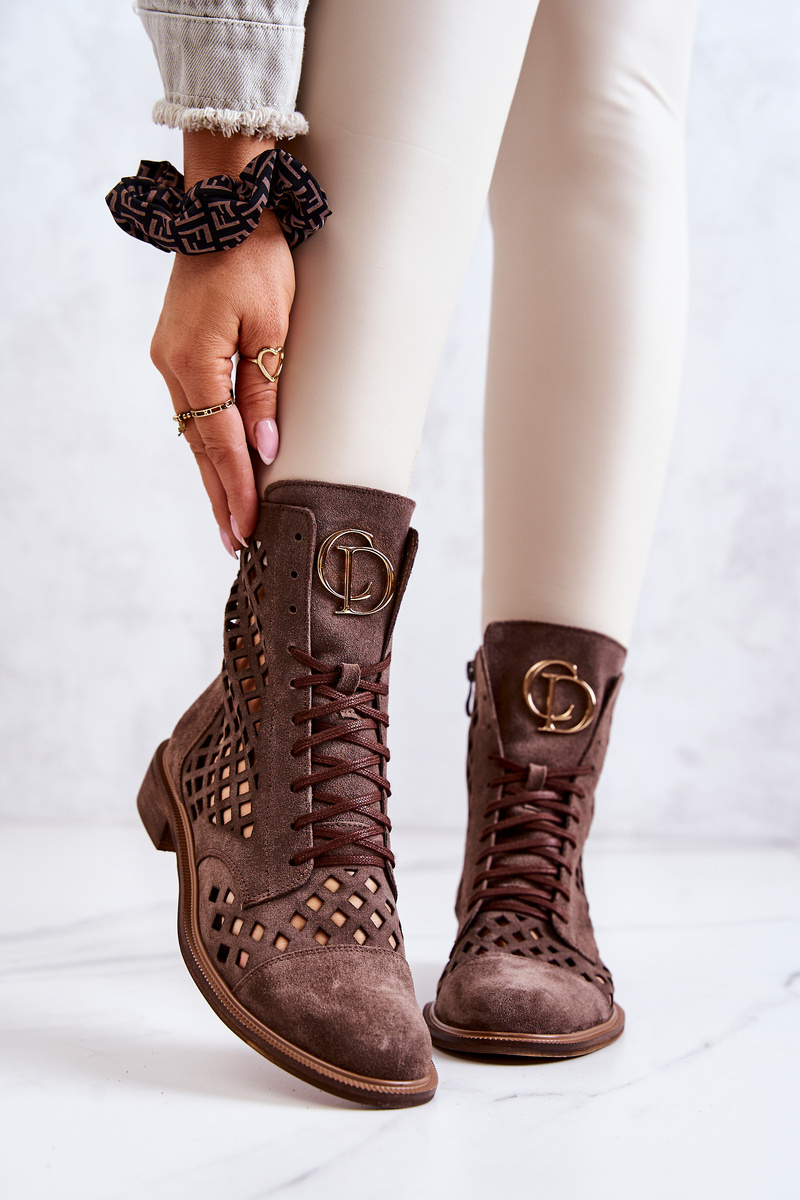 Botki Skórzane Ażurowe Na Suwak Nicole Brązowe 2695