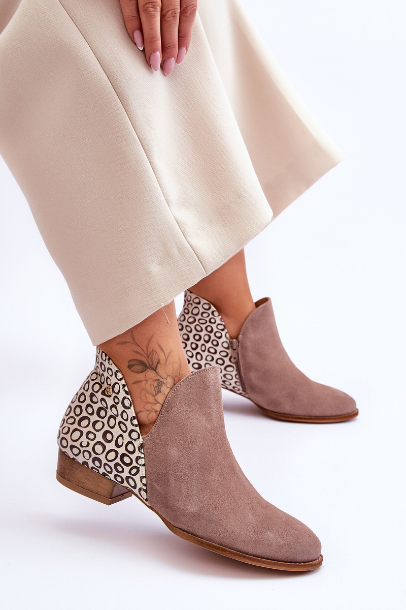 Botki Skórzane Z Cętkami Ciemnobeżowe Maciejka 04091-55