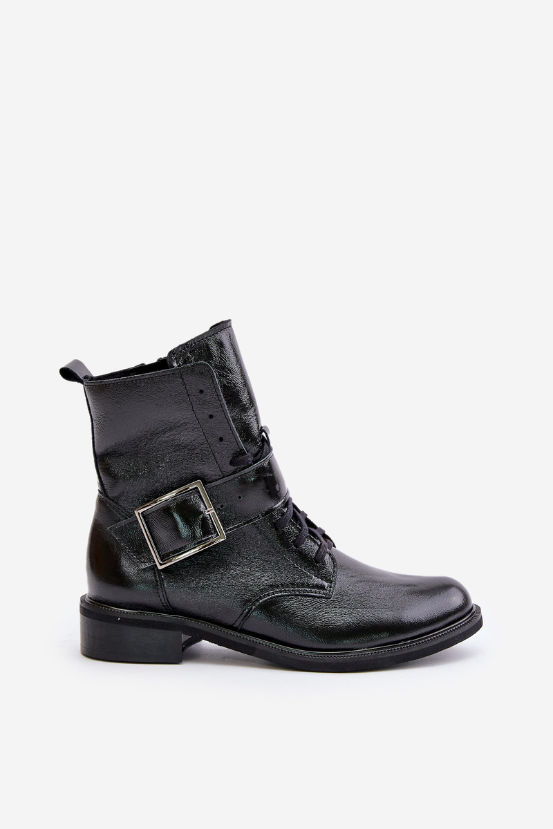 Botki Skórzane Z Klamrą Czarne Zazoo 2949