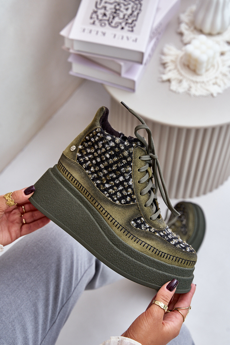 Botki Skórzane Zamszowe Na Koturnie I Platformie Zielone Maciejka 06759-09