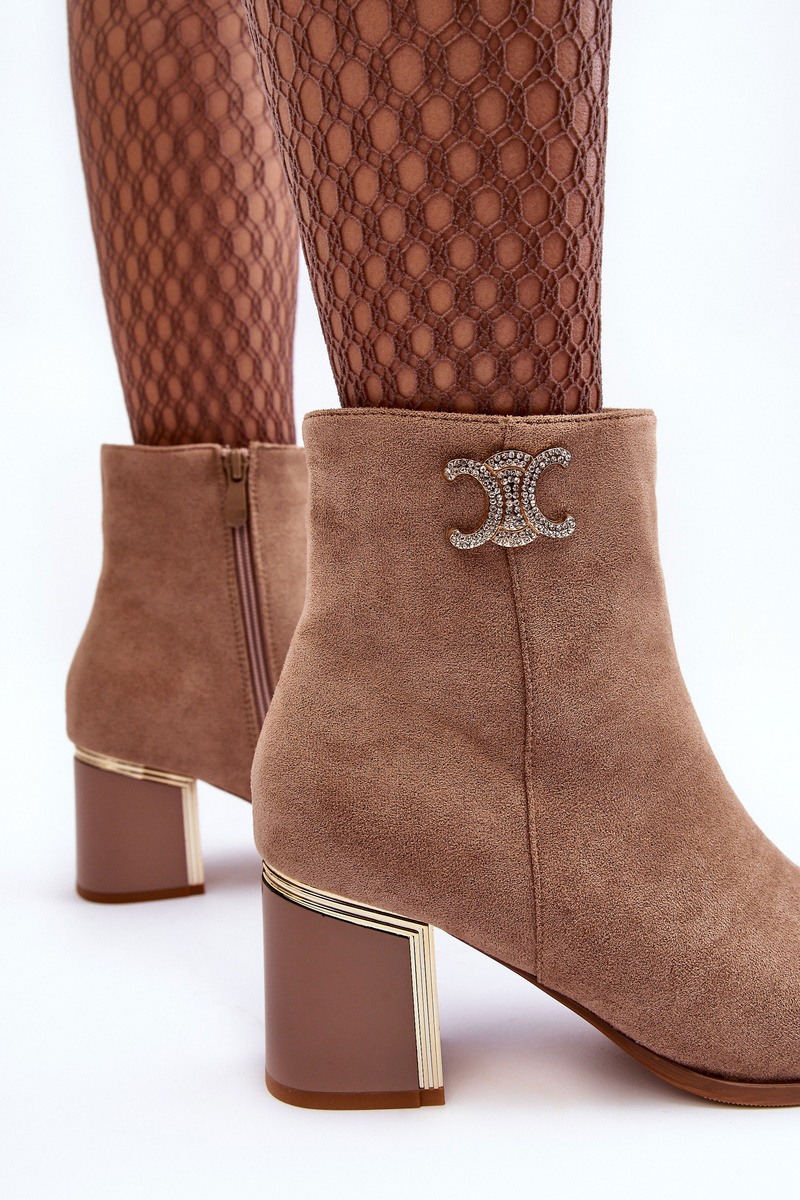 Botki Słupek Zamsz Ozdoba Beżowe Dwinja NS368P