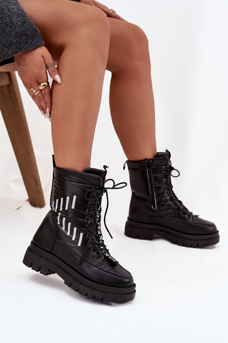 Botki Śniegowce Damskie Sznurowane Czarne Vinceza 23-34586