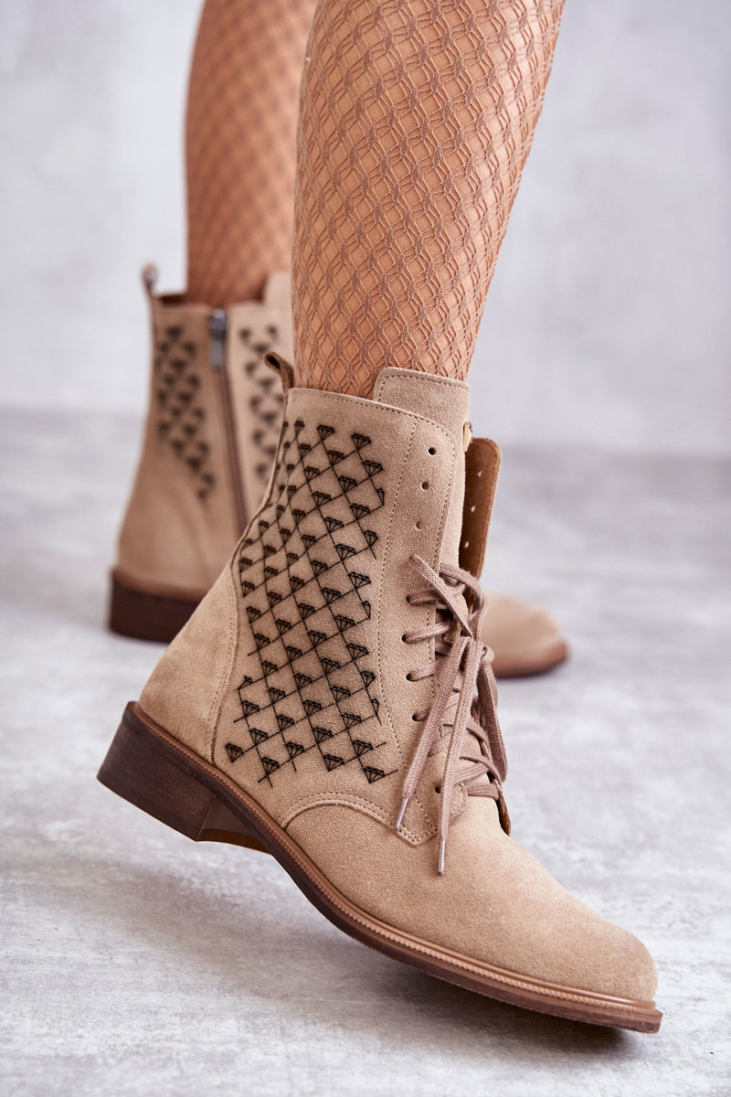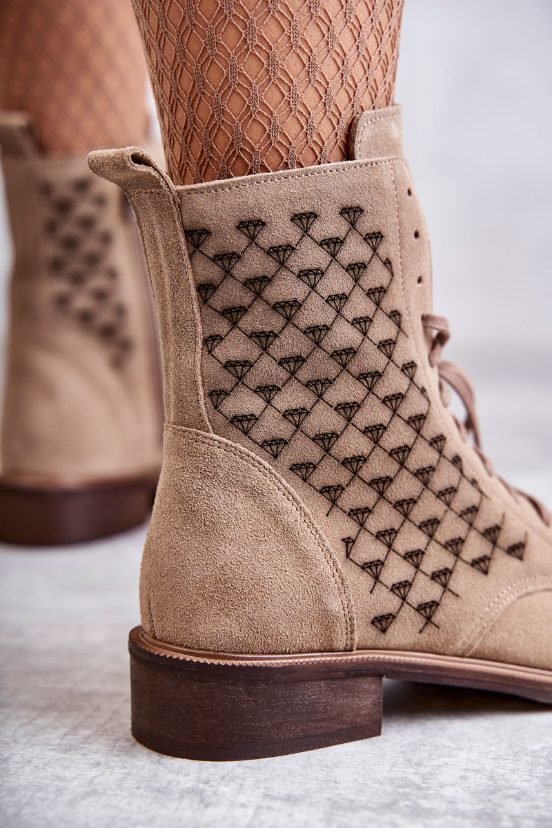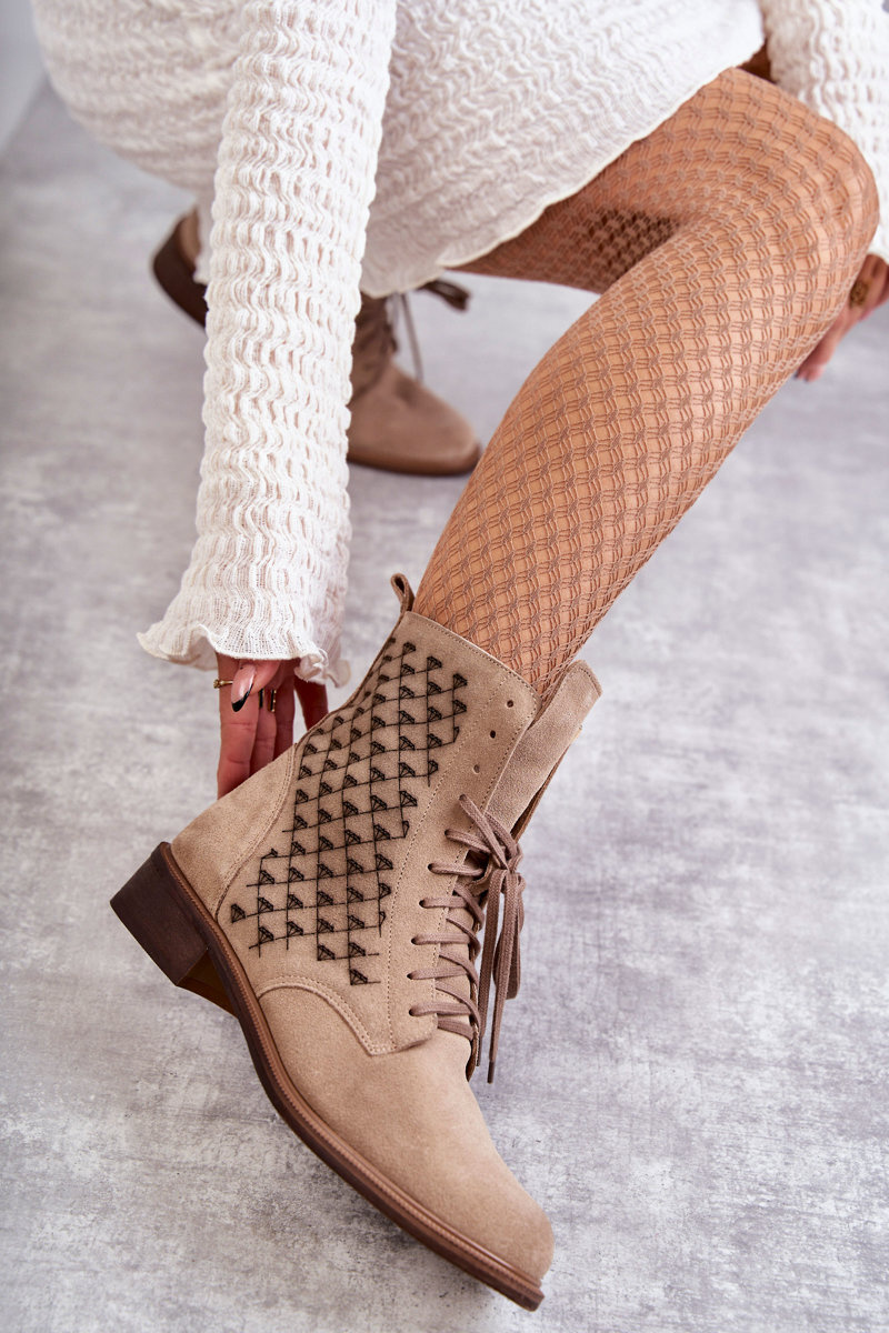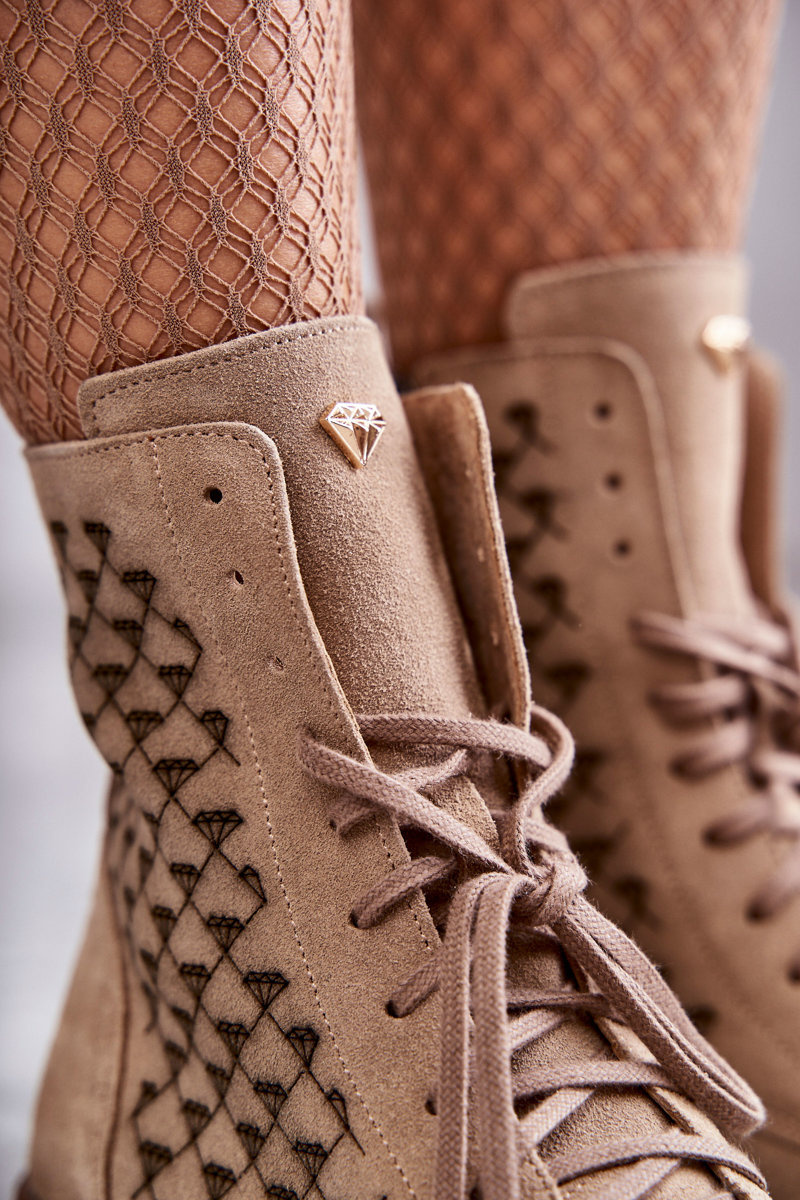 Botki Sznurowane Zamsz Beżowe Nicole 2751