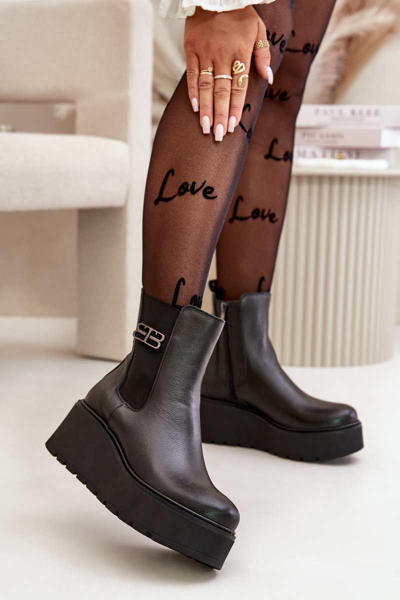 Uwielbianym i najczęściej wybieranym modelem przez kobiety są botki na płaskim, stabilnym obcasie. Posiadają wiele atutów, jednak głównym z nich jest zapewnienie wysokiego komfortu podczas noszenia. Wykonane z wysokiej jakości skóry naturalnej. Osadzone na platformie i koturnie. Zapinane na zamek. Noski zaokrąglone. Środek ocieplony filcem. Z boku cholewki znajduje się ozdobny detal, który nadaje elegancji.