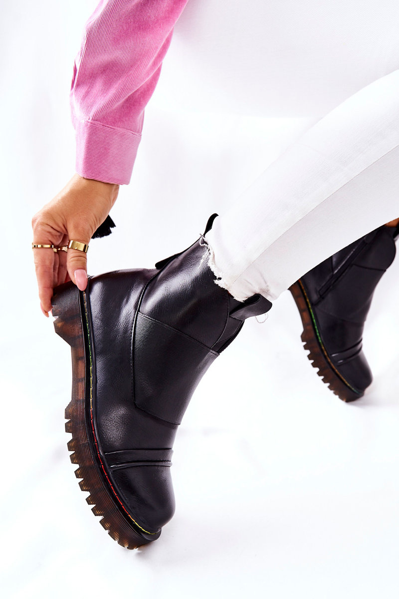Botki Sztyblety Z Kolorowym Przeszyciem Czarne Milie