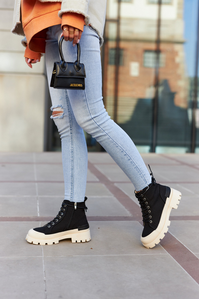 Botki w stylu sportowym? Tak to możliwe! Trapery to praktyczne, a zarazem wygodne obuwie, które znalazło wierne grono zwolenniczek wśród pań. Ochrona, stabilność, wygoda – to jedne z wielu cech tego modelu. Wykonane z materiału tekstylnego. Masywna podeszwa świetnie izoluje od podłoża. Nosek wzmocniony gumowym tworzywem. Zapiętek usztywniany. Model wiązany. Wkładka wykonana z wysokiej jakości eko skóry.
