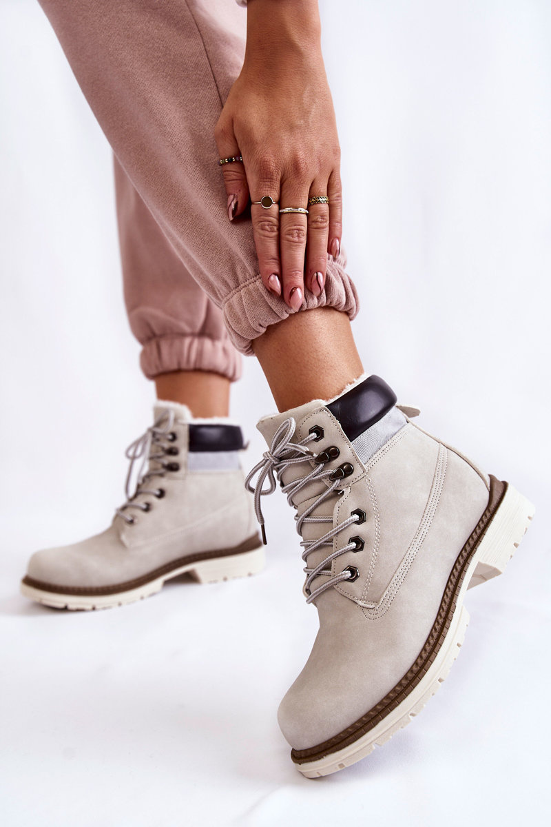 Botki Trapery Damskie Ocieplane Jasnoszare Lonne