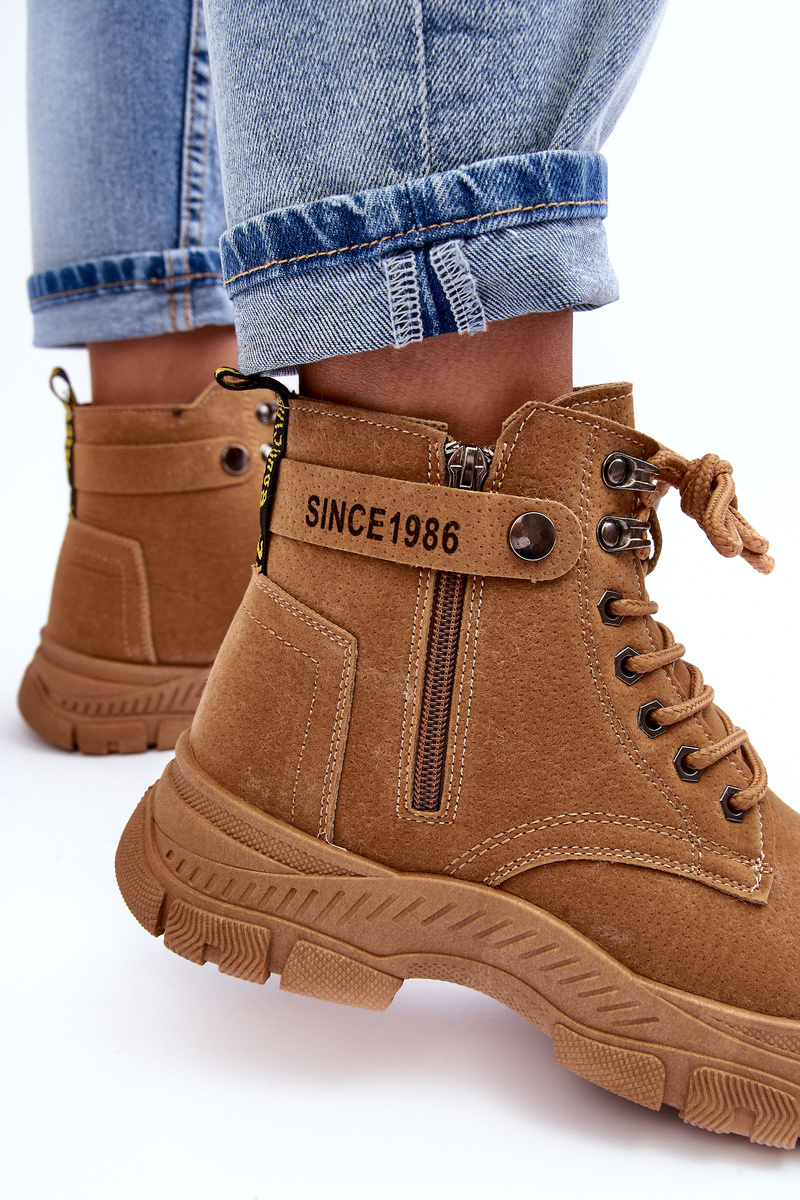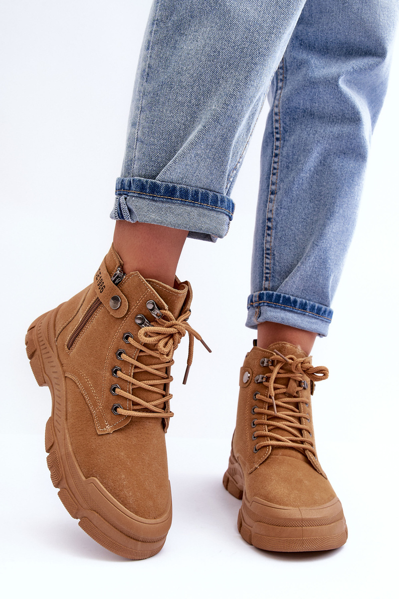 Botki Trapery Damskie Ocieplane Zamsz Camel NB607