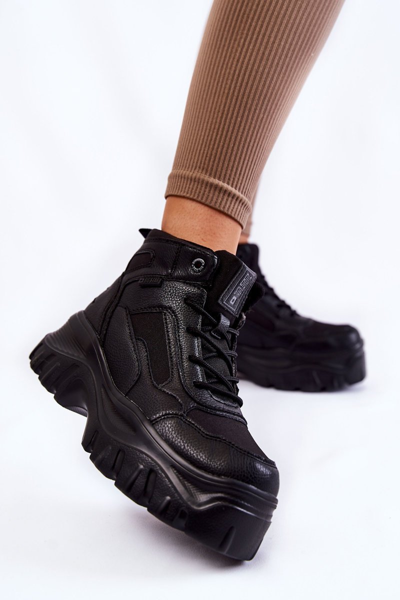 Uwielbianym i najczęściej wybieranym modelem przez kobiety są botki na płaskim, stabilnym obcasie. Posiadają wiele atutów, jednak głównym z nich jest zapewnienie wysokiego komfortu podczas noszenia. Zostały wykonane z połączenia eko skóry oraz materiału tekstylnego. Posiadają usztywniany zapiętek. Lekki model został osadzony na masywnym, płaskim obcasie i platformie. Wkładka Memory Foam System zapamiętuje kształt stopy, zapewnia doskonałe dopasowanie, absorbuje wstrząsy, jest odporna na odkształcenia oraz pozwala na odparowanie wilgoci i regulację temperatury. Model klasycznie sznurowany.