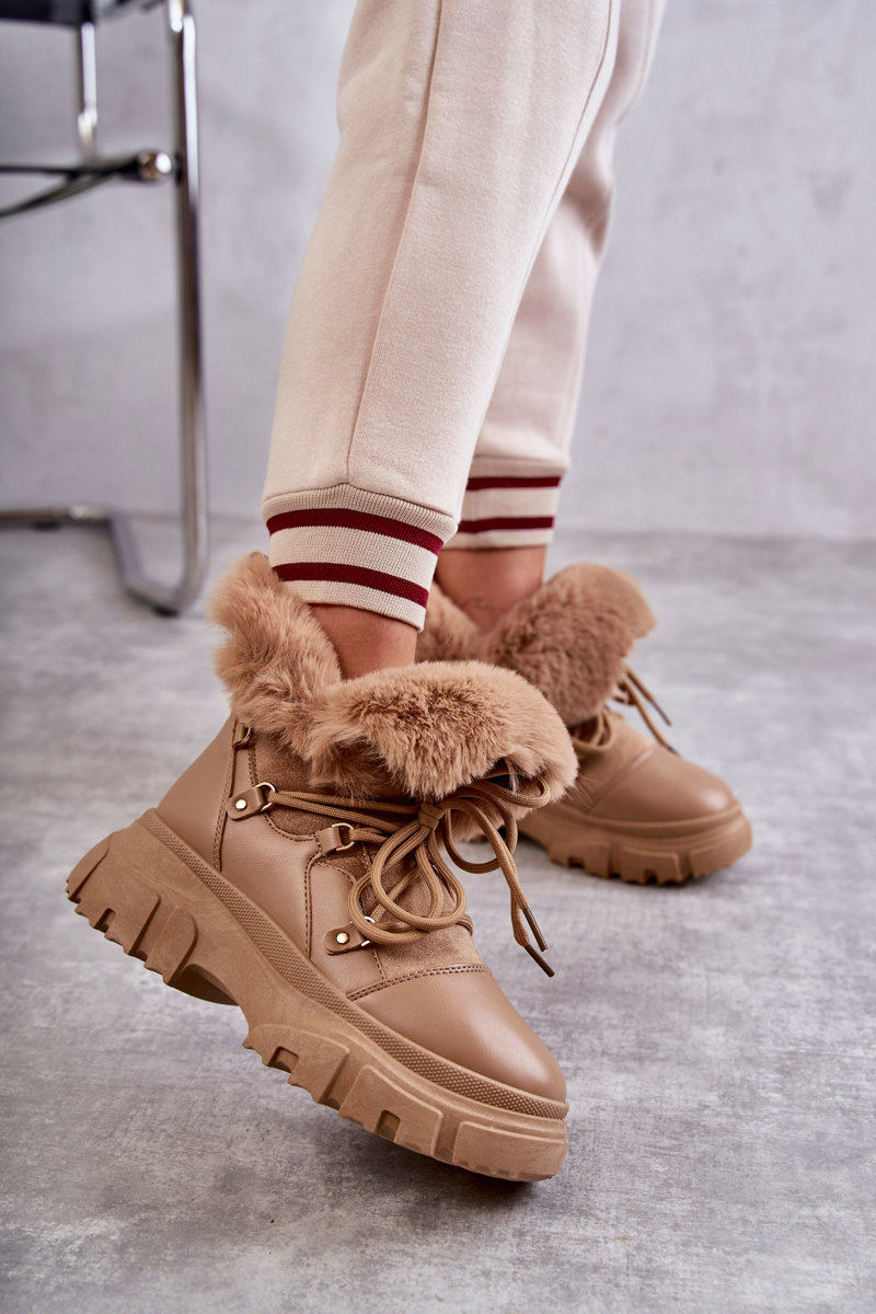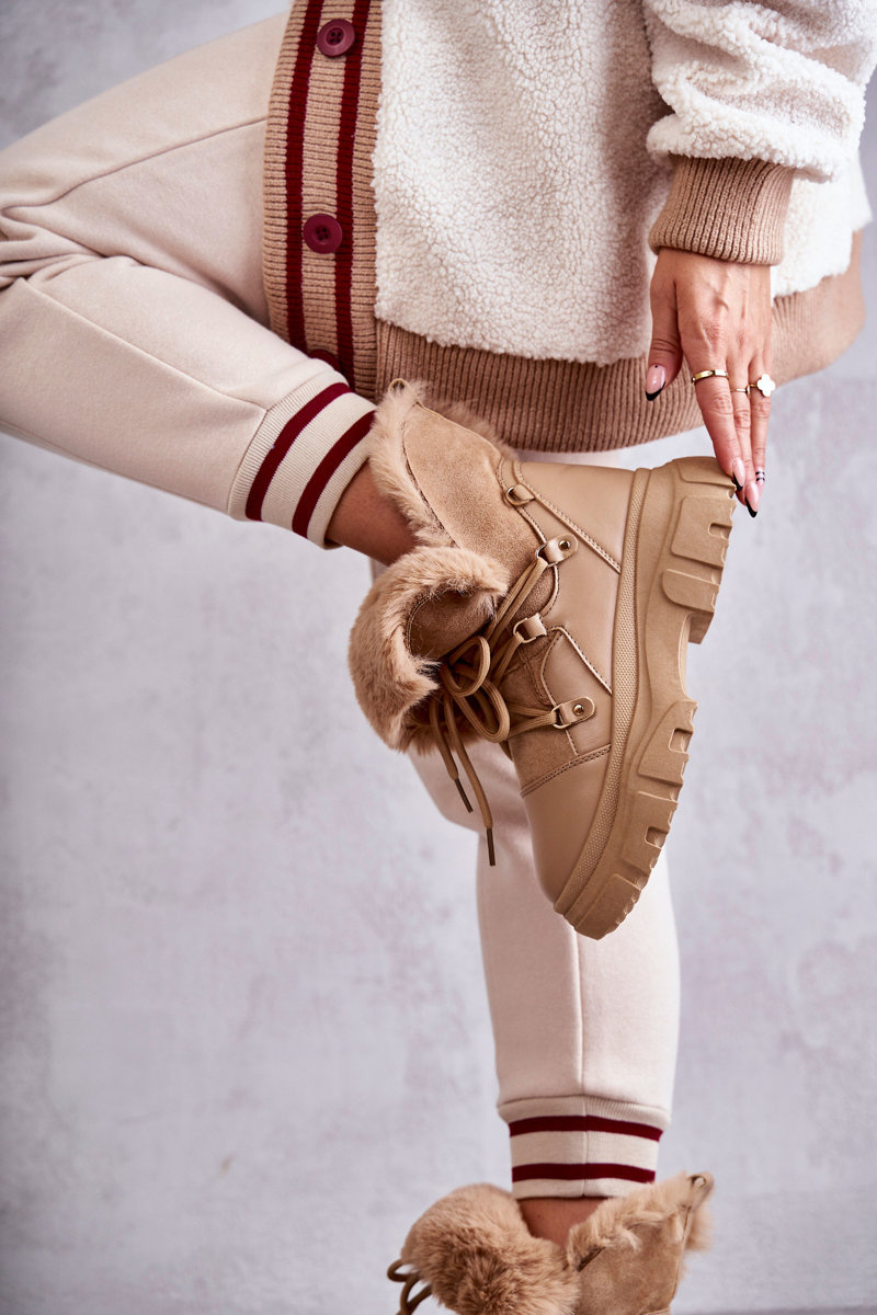 Botki Trapery Ocieplane Ciemnobeżowe Charles