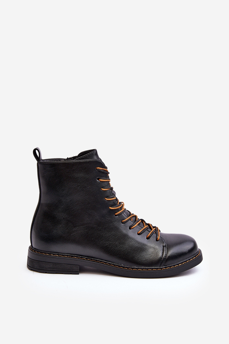 Botki Trzewiki Skóra Damskie Czarne Ethel 58175