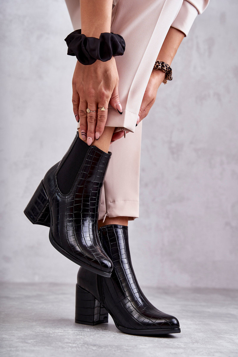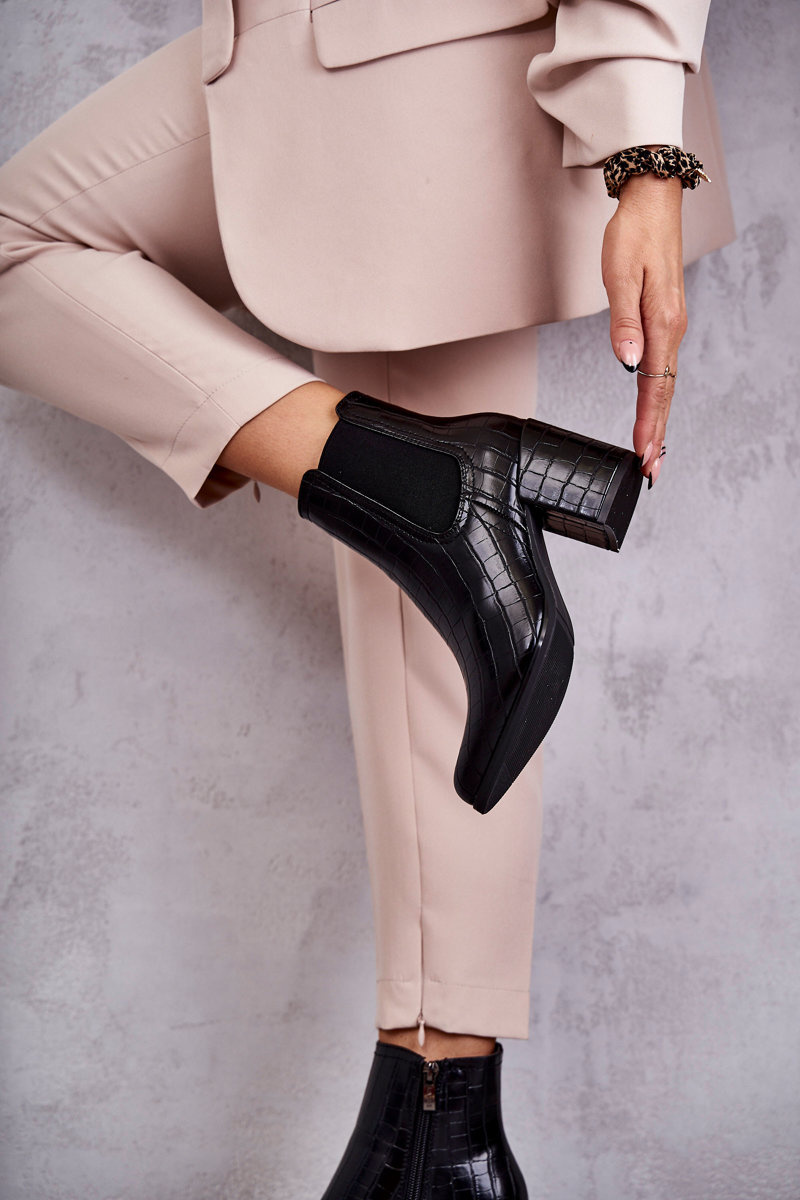Jeśli tu trafiłaś, to znaczy, że cenisz sobie wyjątkowy styl! Botki na obcasie to buty, które można nosić niemalże do każdej stylizacji i jednocześnie zachwycać wyglądem. Wykonane z wysokiej jakości eko skóry w modny wzór. Z boku cholewki posiadają ściągacz. Zapinane na suwak. Osadzone na obcasie w postaci niskiego słupka. Botki zostały ocieplone kocem obuwniczym.
