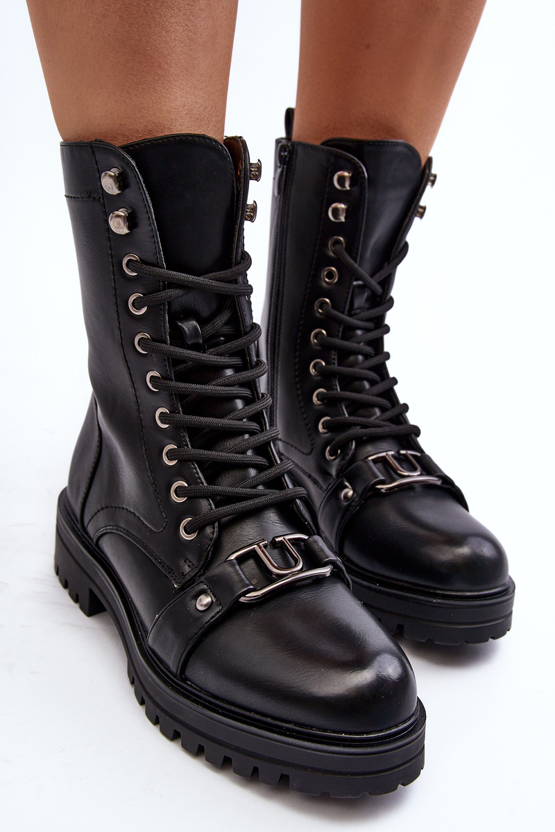 Botki Workery Damskie Z Ozdobą Czarne Belluxe YY06