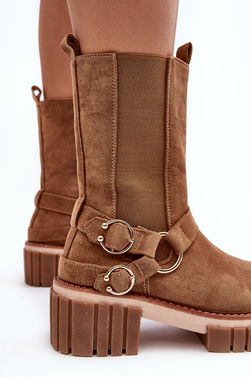 Botki Workery Damskie Zamsz Ocieplane Camel Brinnon 22BT35-5087