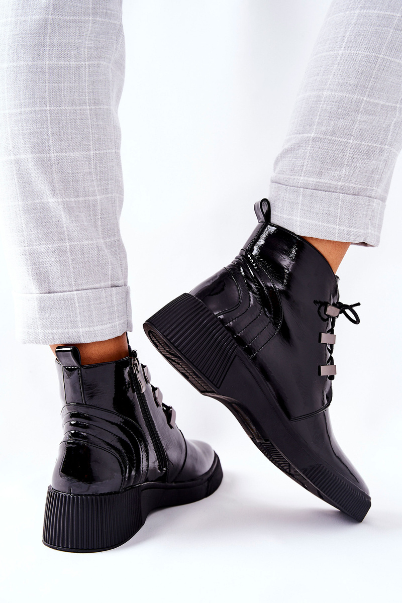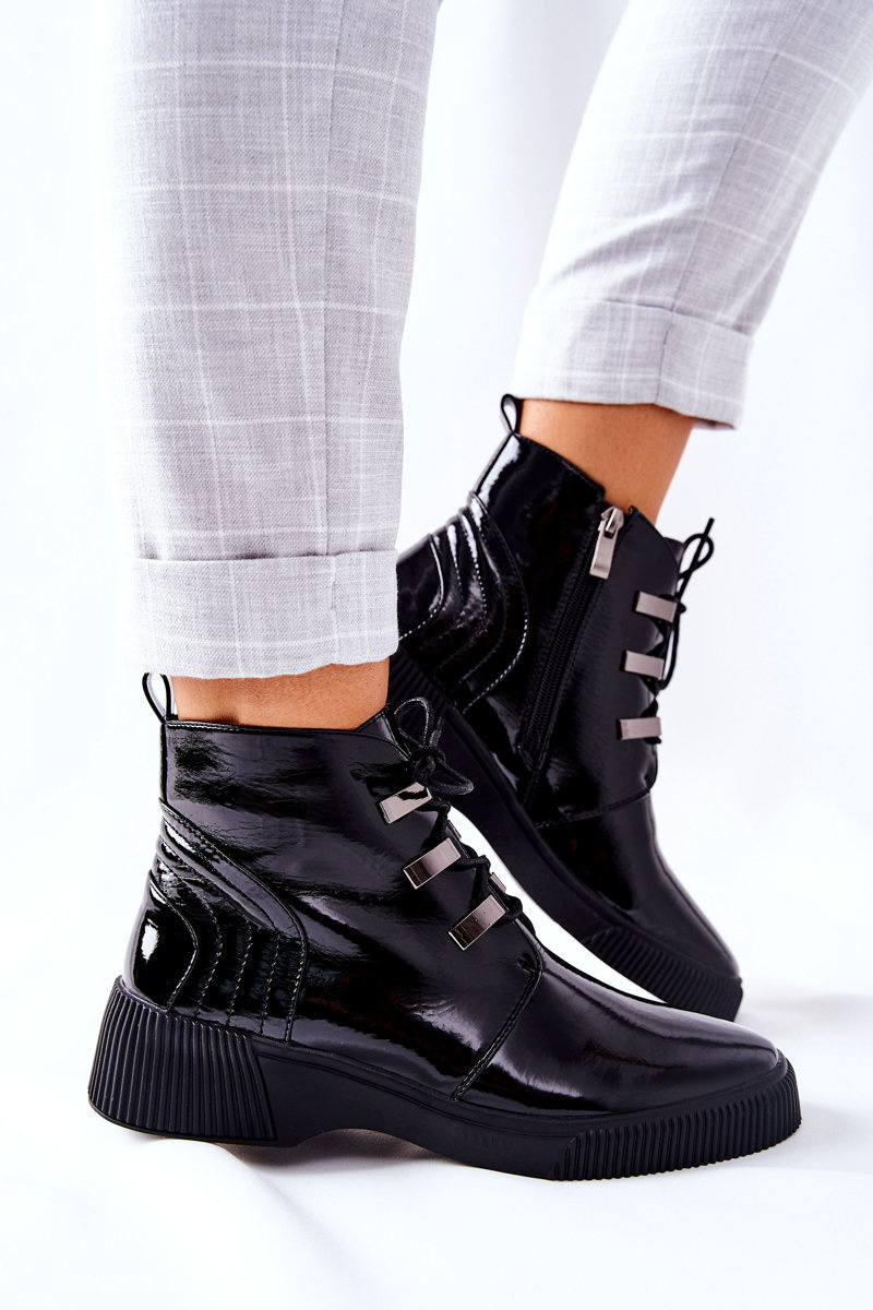 Botki Workery Lakierowane Na Suwak Czarne Vica