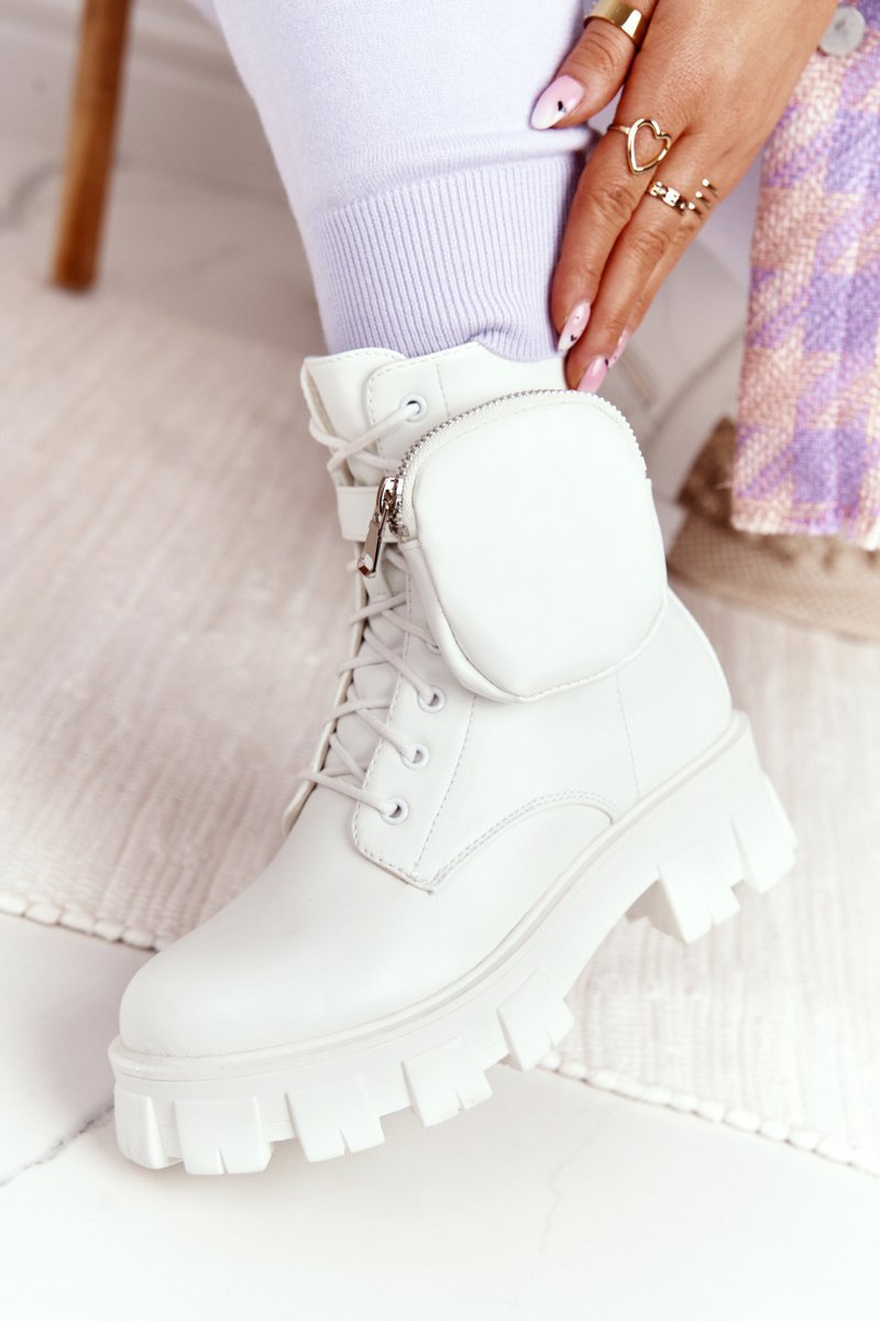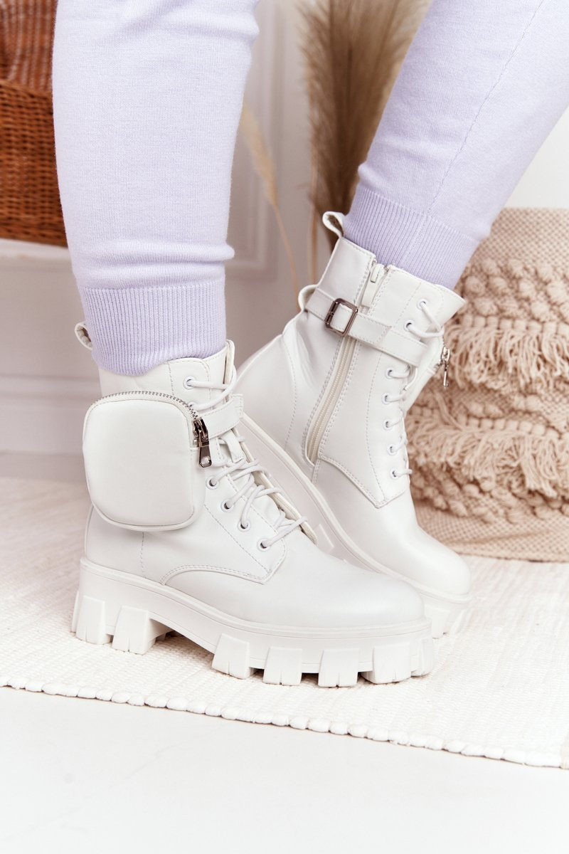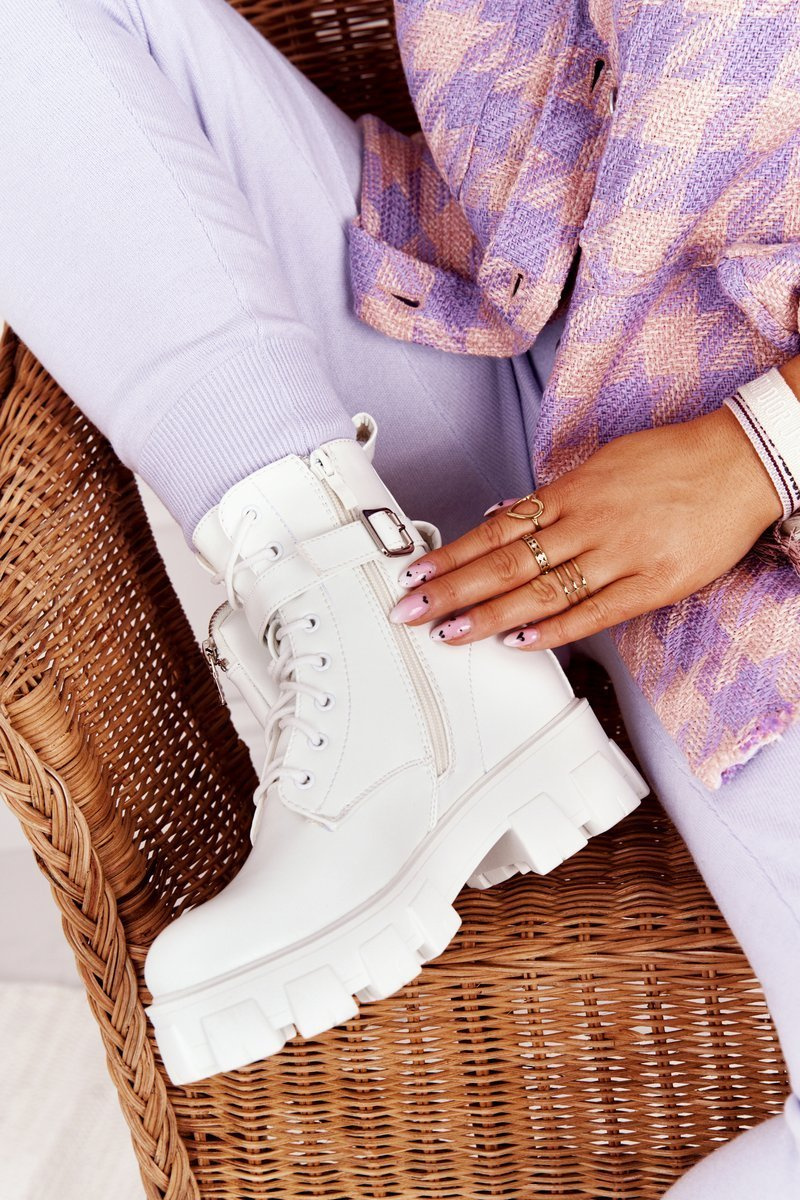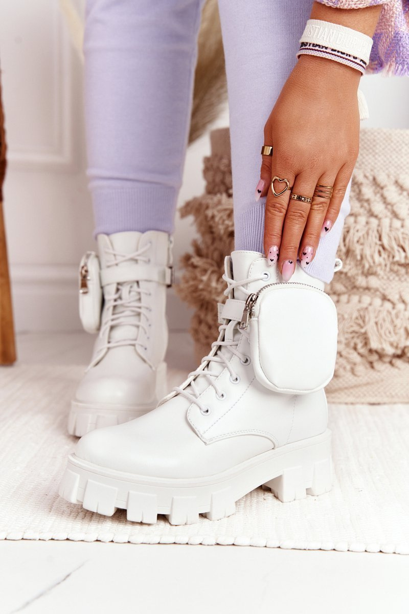 Botki Workery Na Platformie z Nerką Białe Saturday