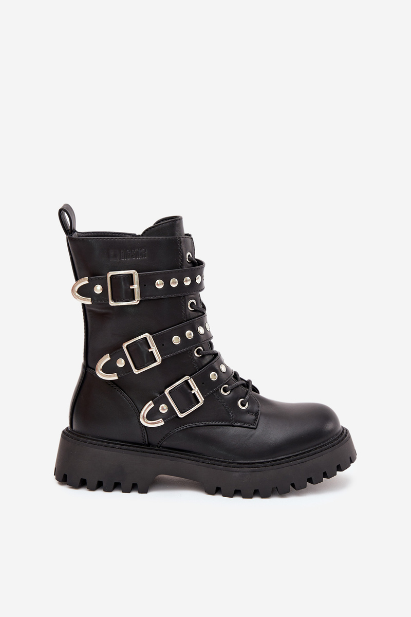 Botki Workery Ocieplane Paski Z Klamrami Czarne Big Star OO274707