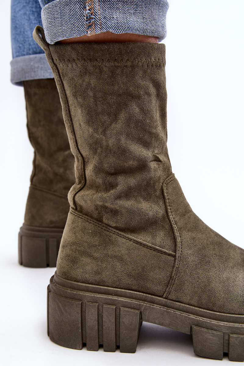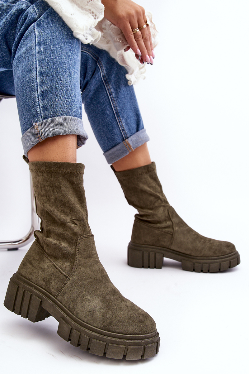 Botki Workery Płaski Obcas Wsuwane Zielone Divella 1268