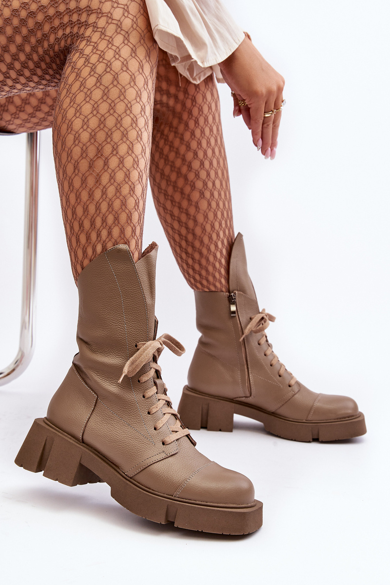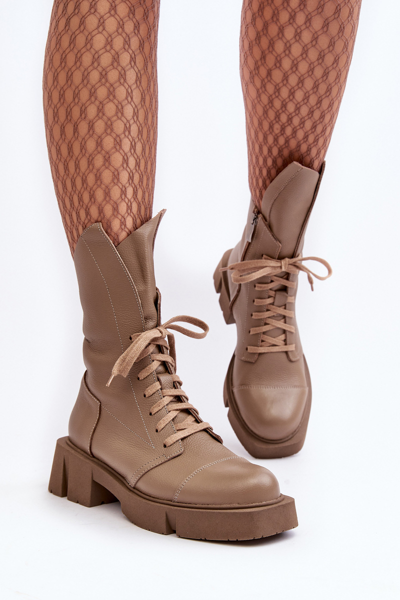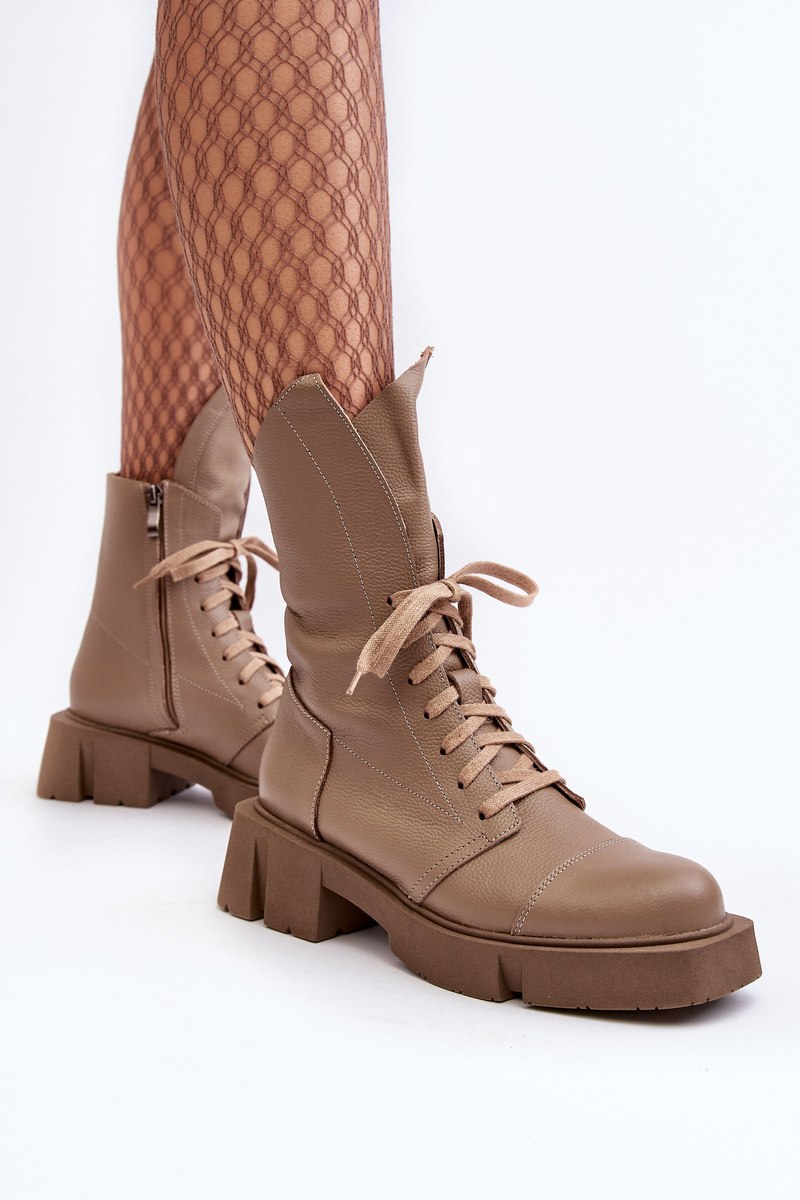 Botki Workery Skóra Masywny Płaski Obcas Ciemnobeżowe Zazoo 976A